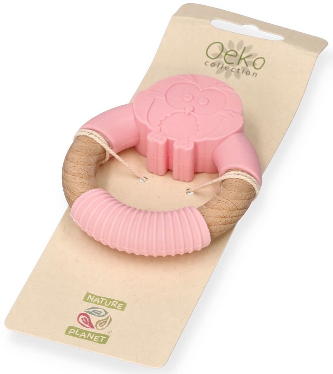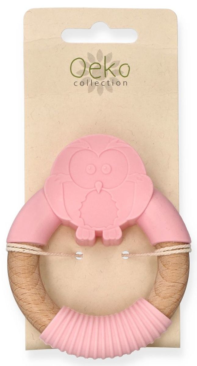 Le gengive irritate non saranno più un problema. Ecco un prodotto non solo pratico, ma anche un bellissimo ornamento e giocattolo a mano con il motivo di un gufo rosa. Grazie all'uso di silicone sicuro, il bambino può mordere questo prodotto senza preoccuparsi di sostanze nocive che potrebbero entrare nel suo organismo. L'anello di legno, su cui è montata la morbida superficie in silicone, è ideale per masticare. Le protuberanze sul massaggiagengive e l'estensione a strisce sicuramente calmeranno le gengive doloranti da cui crescono i piccoli denti.