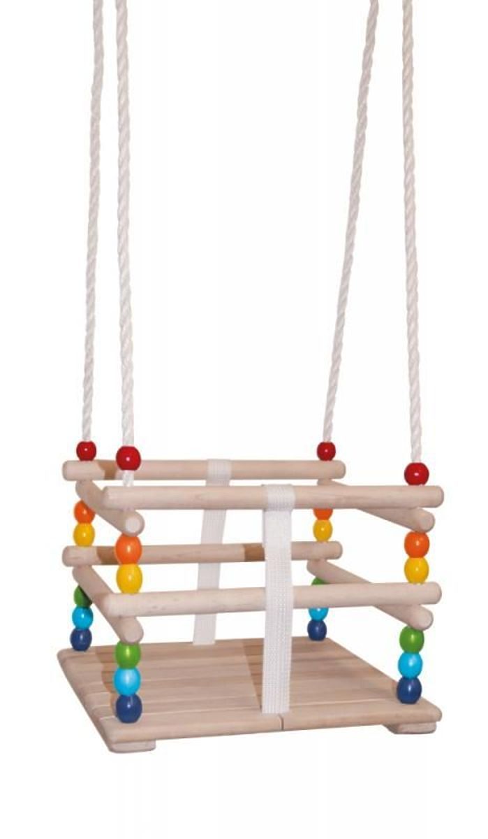 Un'altalena in legno con perline colorate garantirà tanto divertimento al bambino a casa e in giardino. L'altalena incoraggia il bambino a muoversi in modo divertente e sviluppa le sue capacità motorie.