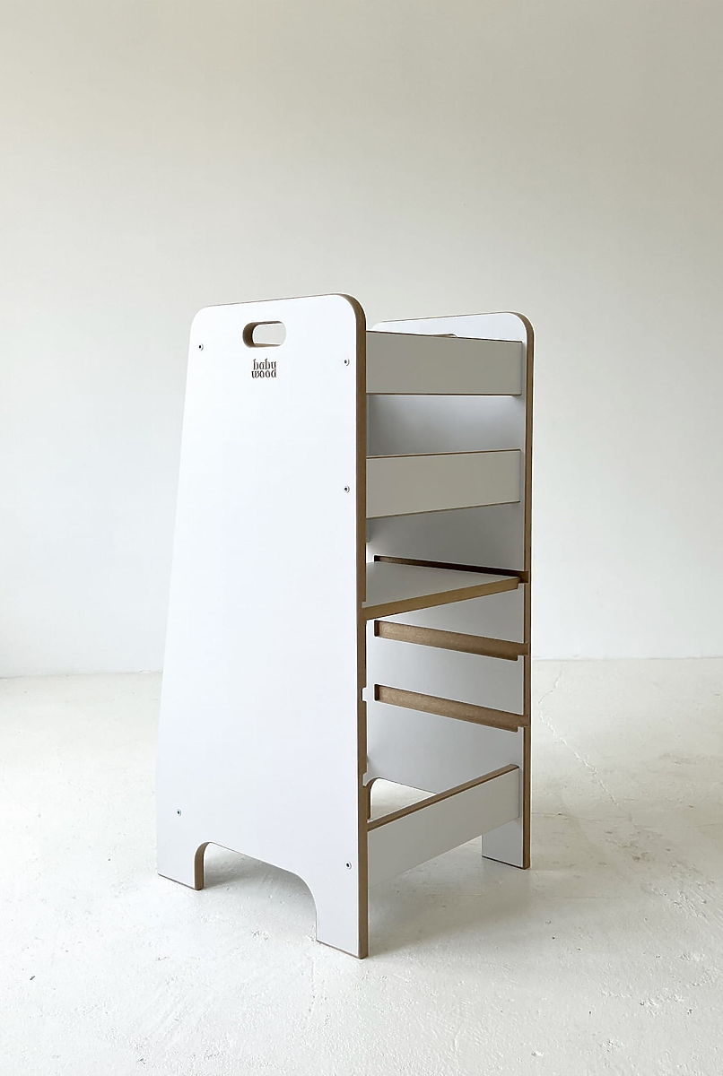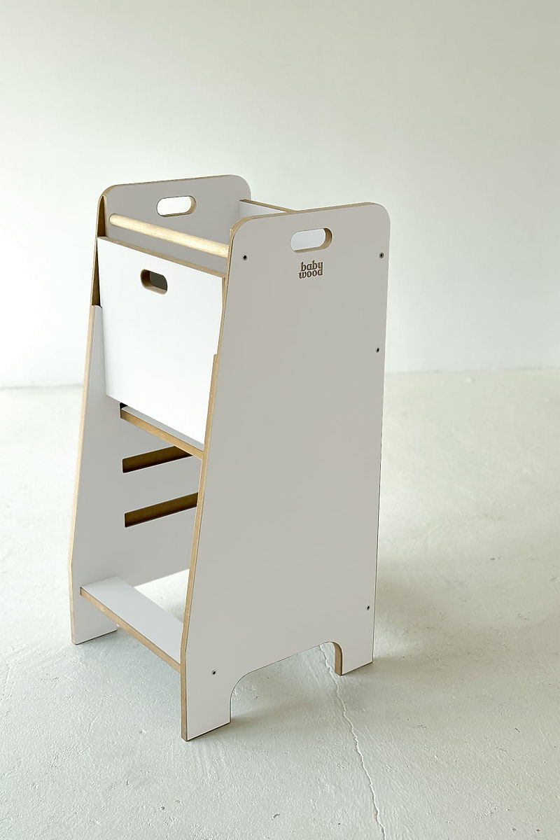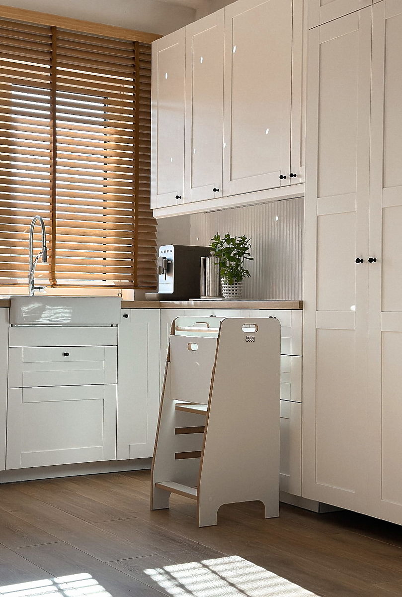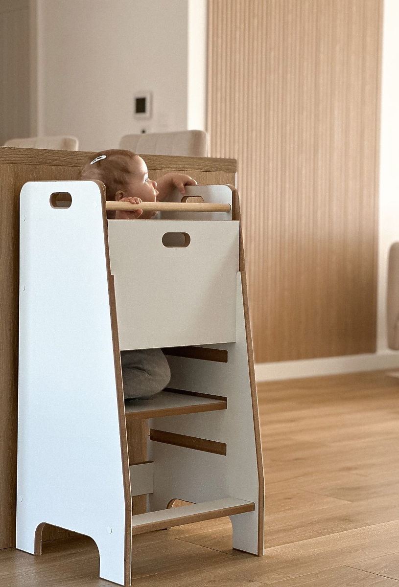 Kitchen Helper Comfort è un intelligente aiuto da cucina che permette ai bambini di partecipare in sicurezza alle attività quotidiane in cucina. Consente loro di stare stabilmente all'altezza giusta e di partecipare attivamente alla preparazione dei pasti, mentre i genitori possono essere certi che tutto è sicuro e sotto controllo. Con il suo design pulito, si adatta sia alle cucine moderne che a quelle classiche. Questo aiuto offre al bambino uno spazio non solo per aiutare in cucina, ma anche per scoprire, imparare e trascorrere del tempo insieme. Favorisce l'autonomia e lo sviluppo naturale delle abilità fin dalla tenera età.