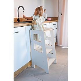 Dětská montessori učící věž v bílém provedení s výřezy ve tvaru lichoběžníku. Je spolehlivý a .. altro