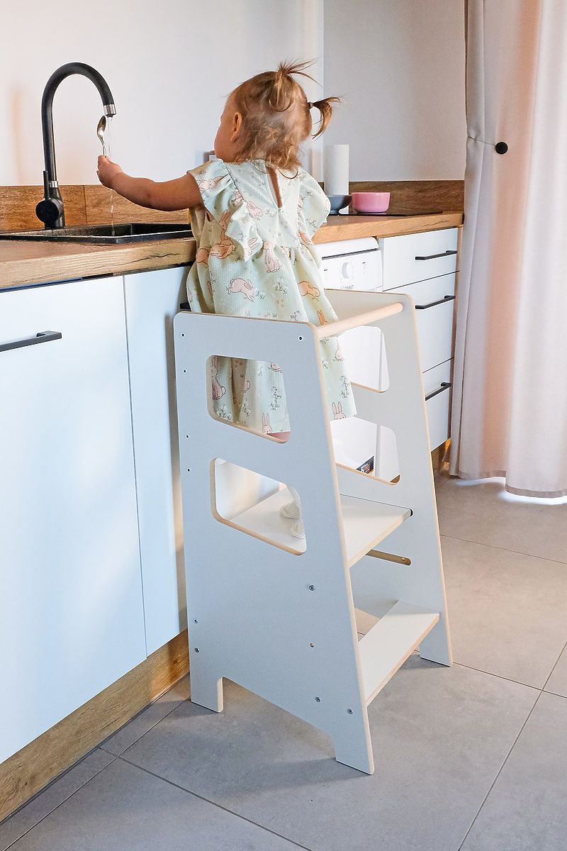 Dai ai tuoi figli l'opportunità di unirsi a te in tutte le attività interessanti in cucina, in bagno o magari nel tuo laboratorio.