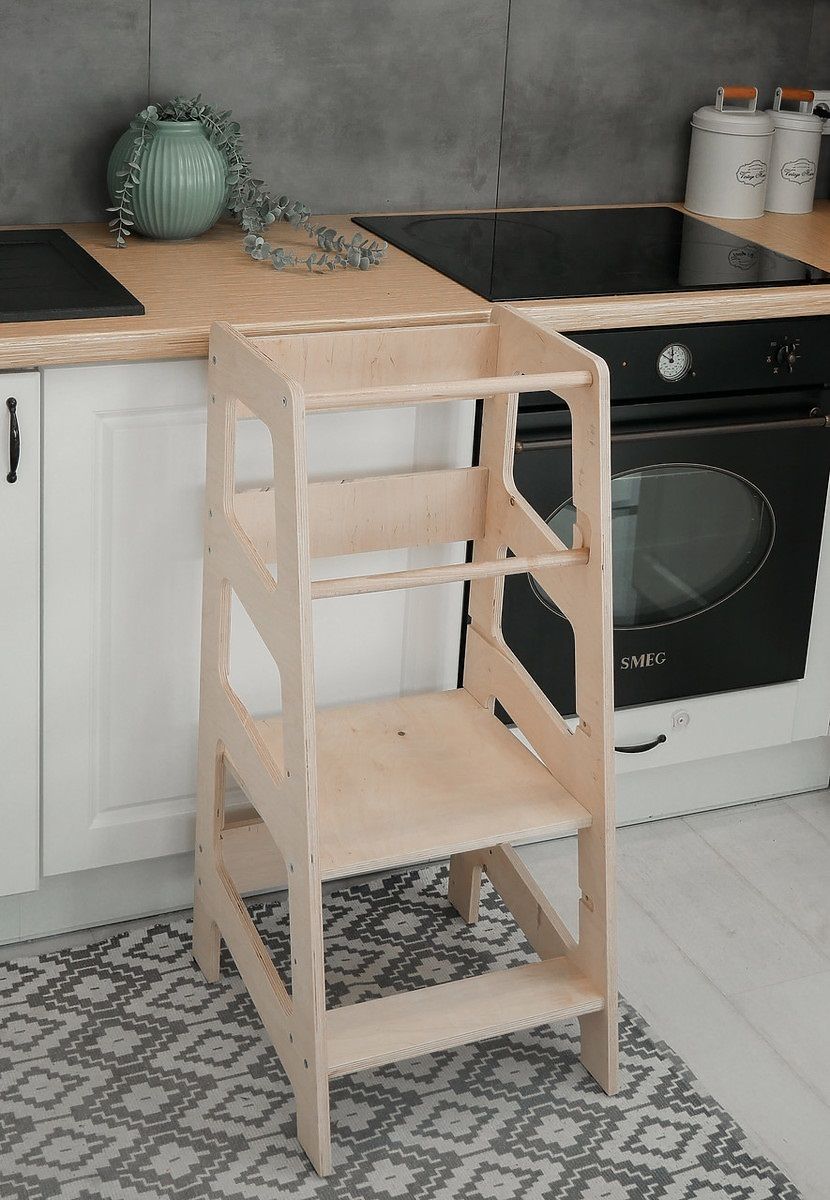 La torre didattica montessori inferiore per bambini Sara MINI 75 dal design naturale è un aiuto affidabile e pratico che sviluppa la creatività, le capacità motorie e ha anche un effetto positivo sullo sviluppo generale e sulla socializzazione del bambino.