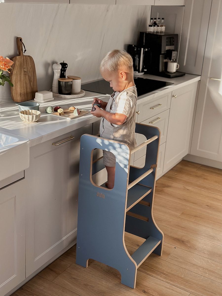 Torre di apprendimento SLIM nelle bellissime sfumature di blu attirerà i genitori che desiderano coinvolgere i loro piccoli aiutanti nelle attività quotidiane e permettere loro di scoprire il mondo che li circonda. Questa pratica torre di apprendimento contribuisce allo sviluppo della creatività, indipendenza e motricità dei bambini, aiutando così lo sviluppo complessivo della personalità e la socializzazione. Coinvolgete i vostri bambini nelle classiche attività domestiche e vivete con loro momenti di divertimento e indimenticabili.