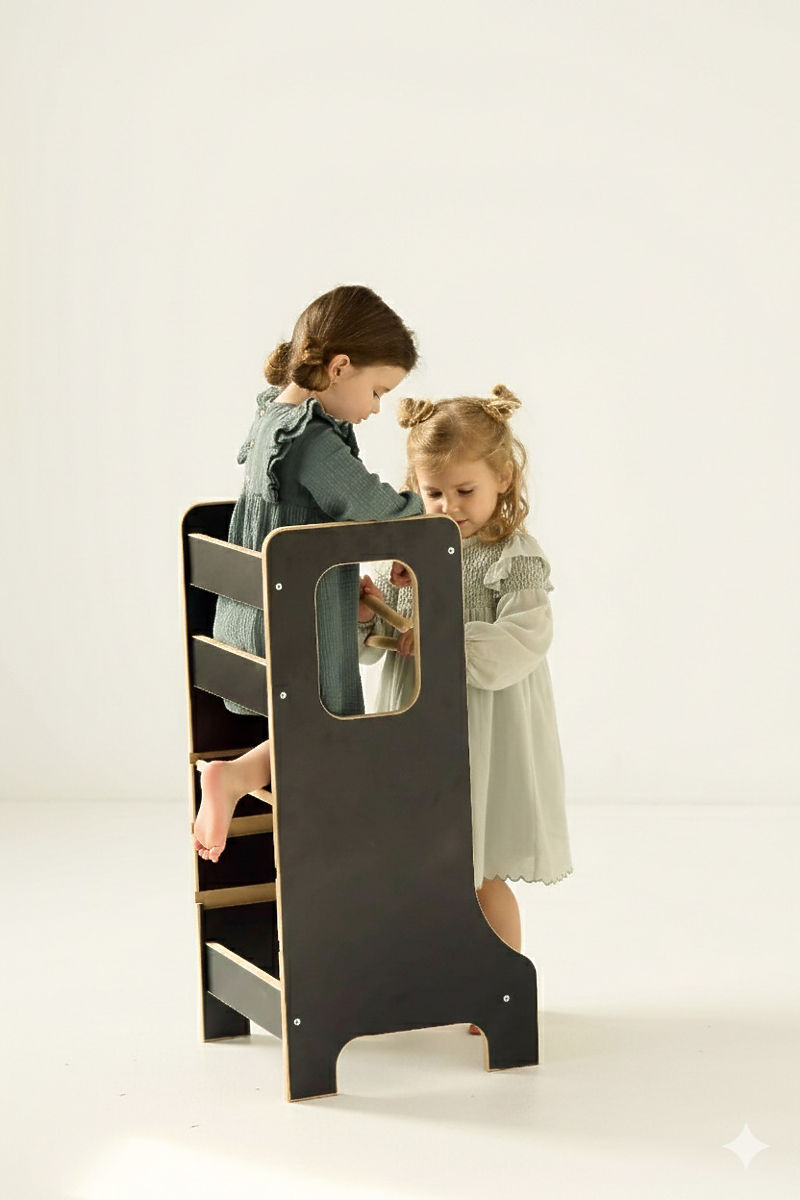 Torre di apprendimento nera per bambini, design moderno e sicuro. .. altro
