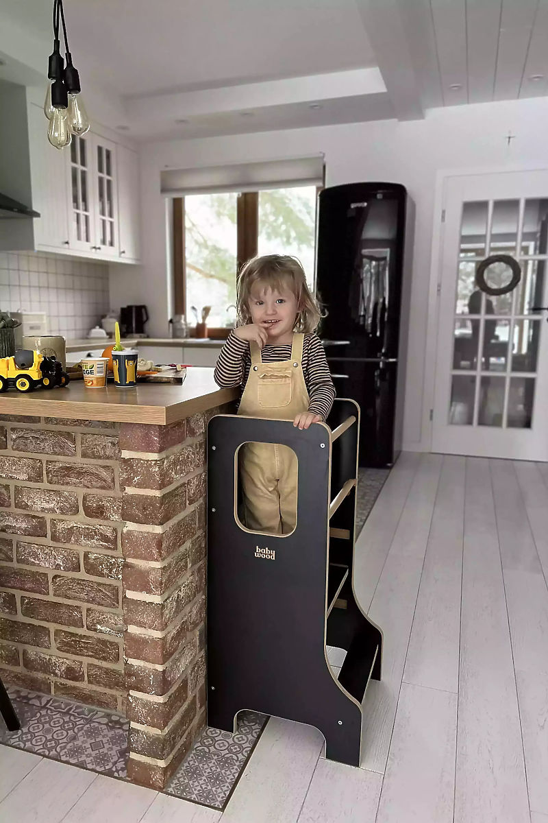 Torre di apprendimento SLIM in versione nera è un aiuto pratico e stiloso per le famiglie che desiderano coinvolgere i bambini in modo sicuro nelle attività quotidiane domestiche. Permette ai bambini di stare all'altezza giusta, osservare ciò che li circonda e partecipare attivamente alle attività quotidiane. Allo stesso tempo, favorisce lo sviluppo dell'autonomia, della motricità e della fiducia in sé stessi del bambino. Grazie al design snello, la torre si integra facilmente negli interni moderni senza occupare troppo spazio. La struttura stabile e gli elementi di sicurezza ben progettati garantiscono un uso comodo e sicuro.