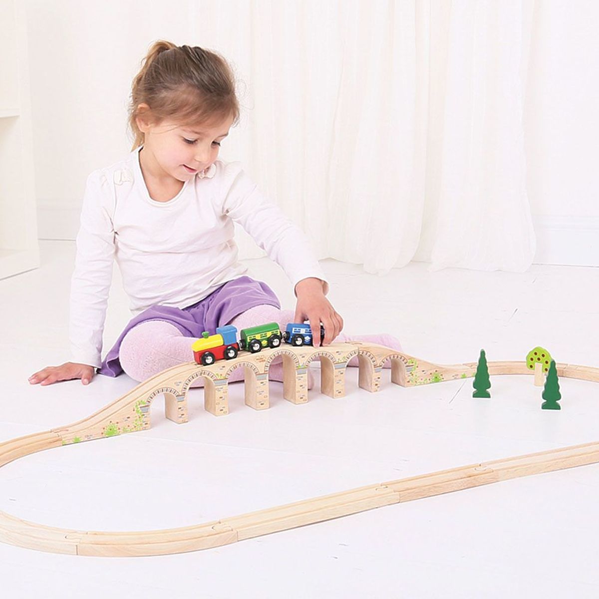 Un lungo e alto ponte di legno per i treni, sotto il quale tutte le macchine e i vagoni passeranno finalmente senza problemi e con grandi spese. Caratteristiche principali: I binari del treno Bigjigs Rail e i relativi accessori possono essere combinati con tutti gli altri binari del treno in legno presenti sul mercato.