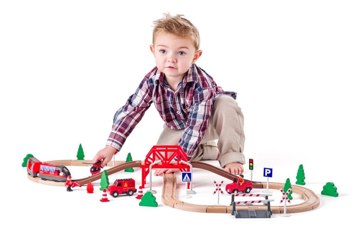 I pezzi della pista sono compatibili con i prodotti di altri produttori come i marchi: Brio, IKEA, ELC, Little Steps, Eichhorn, Woodyland, Tesco, Carousel ecc., quindi è possibile espandere facilmente la pista.