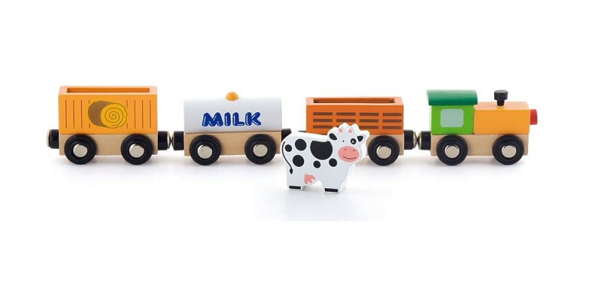 Un treno interessante per completare la tua collezione. Vagoni colorati e tutto ciò che è tipico di una fattoria è qui.