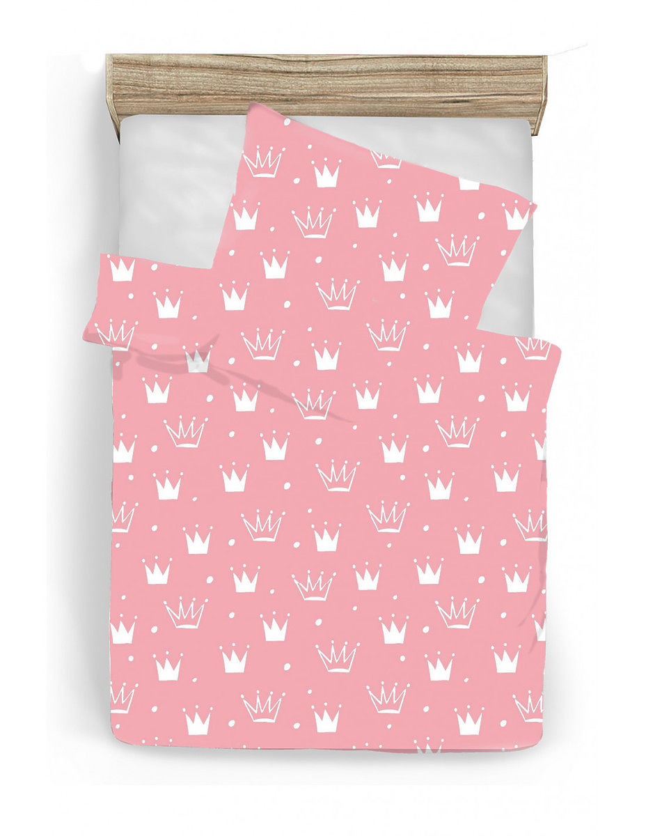 Bella biancheria da letto per bambini con motivo a corona, è adatta per le piccole principesse nella stanza di una ragazza. La biancheria da letto è realizzata con materiali di altissima qualità e 100% cotone.