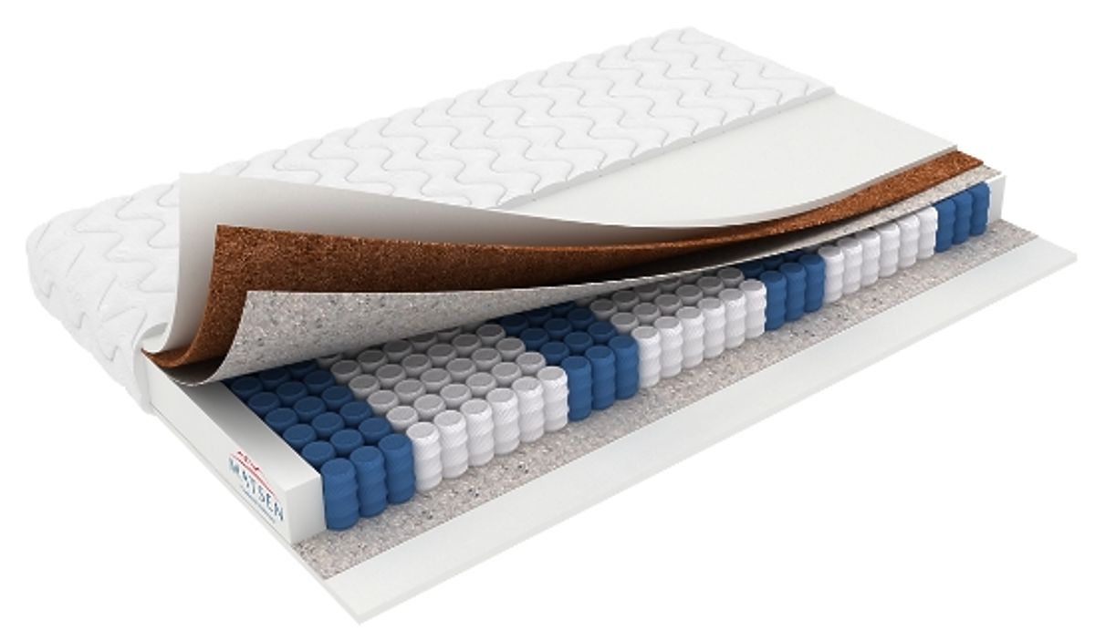 Le molle lavorano puntualmente e si adattano perfettamente alla forma anatomica del corpo. Lo strato di cocco rinforza il materasso, ne prolunga la durata e ha effetti antiallergici, proteggendo da batteri e muffe. Il materasso è adatto anche per giovani utenti.