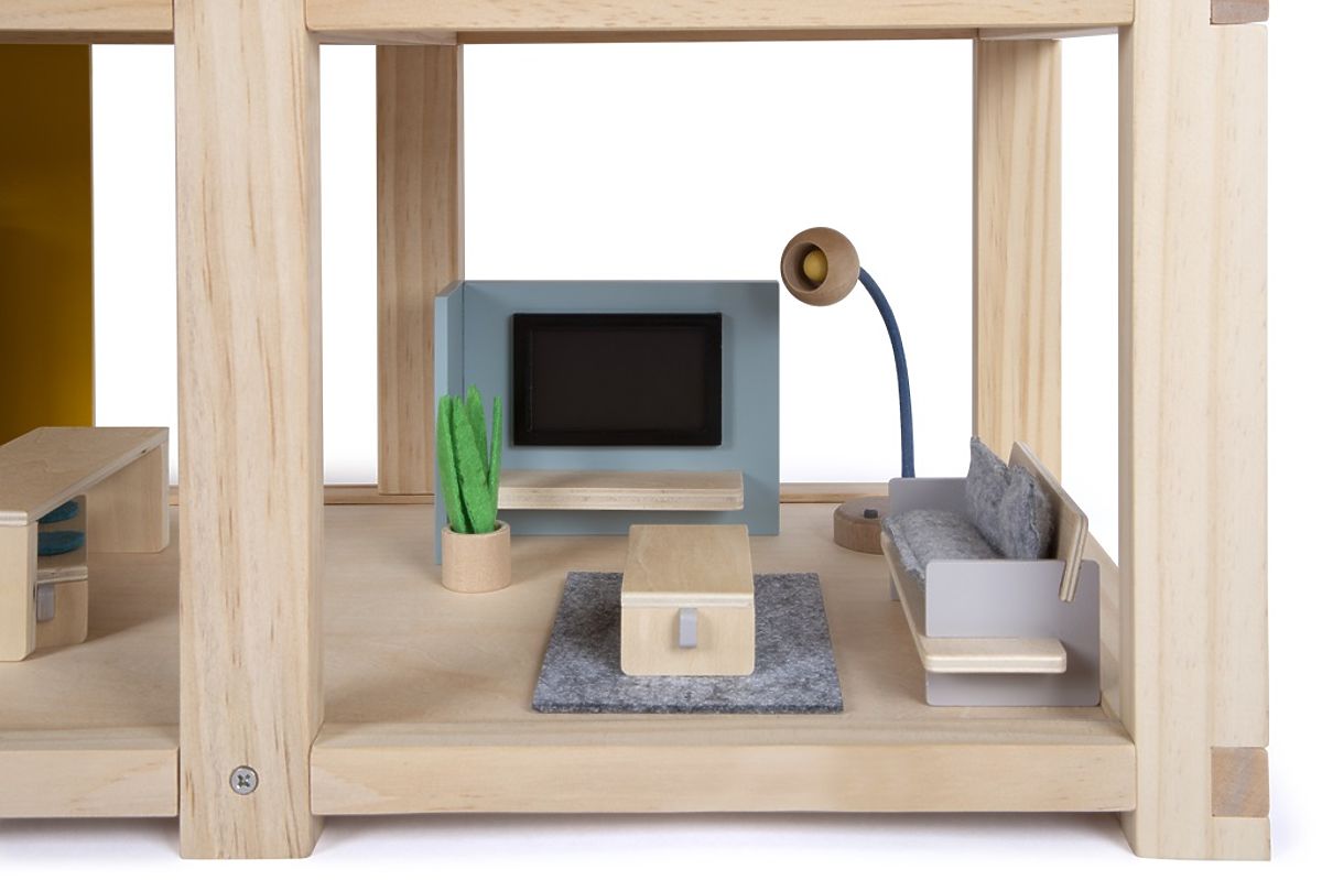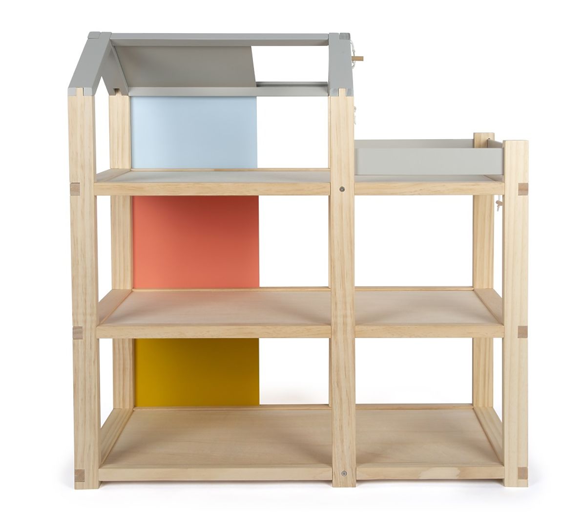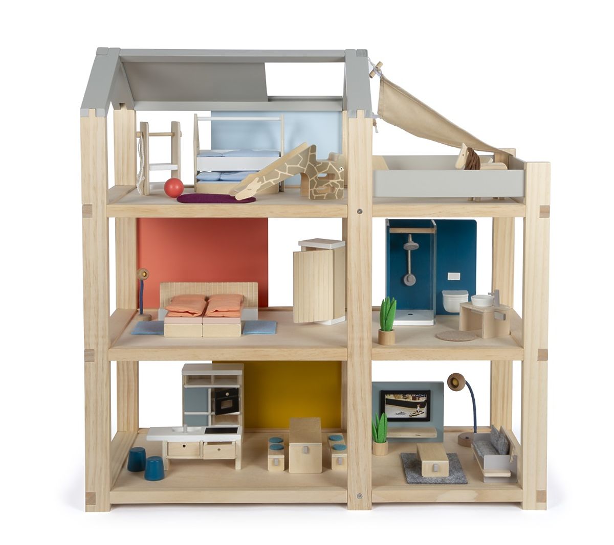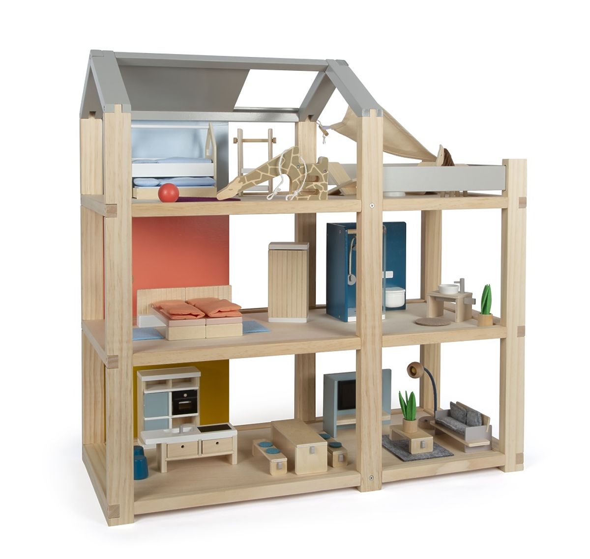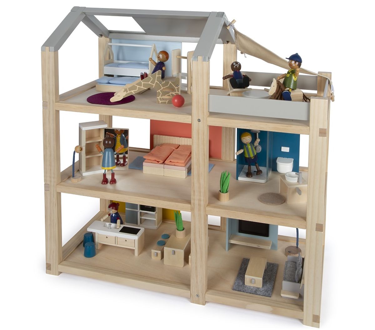 Questa grande casa delle bambole in legno in stile scandinavo con tre piani e un'ampia terrazza sul tetto diventerà non solo un giocattolo divertente e .. altro