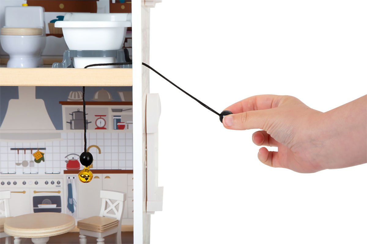 La sala da pranzo e il soggiorno, la cameretta dei bambini e il bagno, così come la camera da letto e la loggia offrono ampio spazio per il gioco. Scale, porte scorrevoli, finestre apribili, comodini con cassetti e un vero campanello che annuncia l'arrivo dei visitatori, insieme a 12 pezzi di mobili e molti accessori, rendono il gioco un divertimento perfetto. La parte anteriore aperta facilita il gioco e consente anche a più bambini di giocare contemporaneamente con le bambole. Il prodotto richiede montaggio, fornito con istruzioni dettagliate per l'assemblaggio. Grande e stabile casa delle bambole in legno con design dettagliato sia all'interno che all'esterno. La parte anteriore aperta facilita il gioco comune di più bambini. 3 piani collegati da una scala, 5 stanze e una terrazza offrono spazio per il gioco. Mobili con dettagli in legno e parti in plastica per un divertimento realistico. Campanello funzionante e altri elementi come porte scorrevoli, finestre apribili, comodino con cassetti. Caratteristiche principali: Grazie alla facciata esterna luminosa e al design moderno, la villa si adatta a qualsiasi cameretta o soggiorno. Abbastanza grande per il gioco comune di più bambini. Campanello funzionante ed elementi di arredo. Include 12 pezzi di mobili con accessori. Adatto per bambole fino a 12 cm di altezza (ad es. LE11804). Riconoscimenti del giocattolo: Top 10 Spielzeug Nominiert 2021