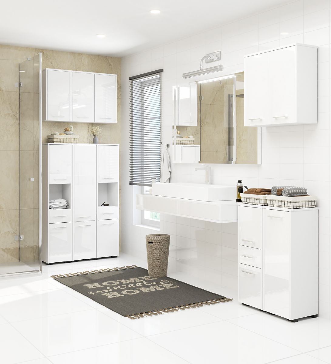 Banaby.it » Mobili per bambini / Comodini e armadi / Armadi / ARMADIETTO DA BAGNO FIN SOPRA LA LAVATRICE BIANCO LUCIDO
