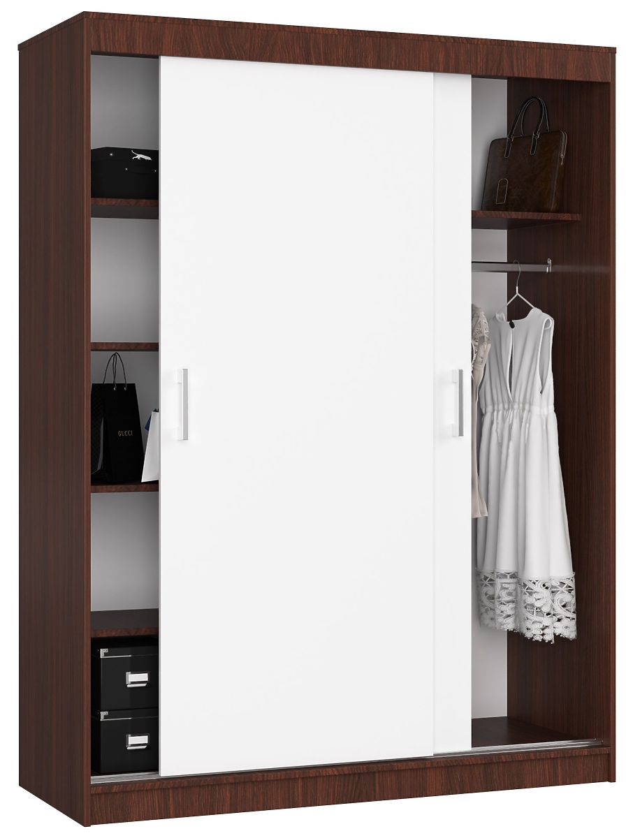 Quali armadi sono popolari? Quelli che sono spaziosi e funzionali, e allo stesso tempo esteticamente realizzati. Queste condizioni sono soddisfatte dall'armadio scorrevole 150 cm CLP nei colori wenge e bianco della nostra offerta. È destinato a due persone. Si adatta perfettamente alla camera da letto, al soggiorno o alla cabina armadio. Può contenere non solo abiti, ma anche tessuti. È un mobile spazioso che aiuta a mantenere l'ordine nella stanza.
