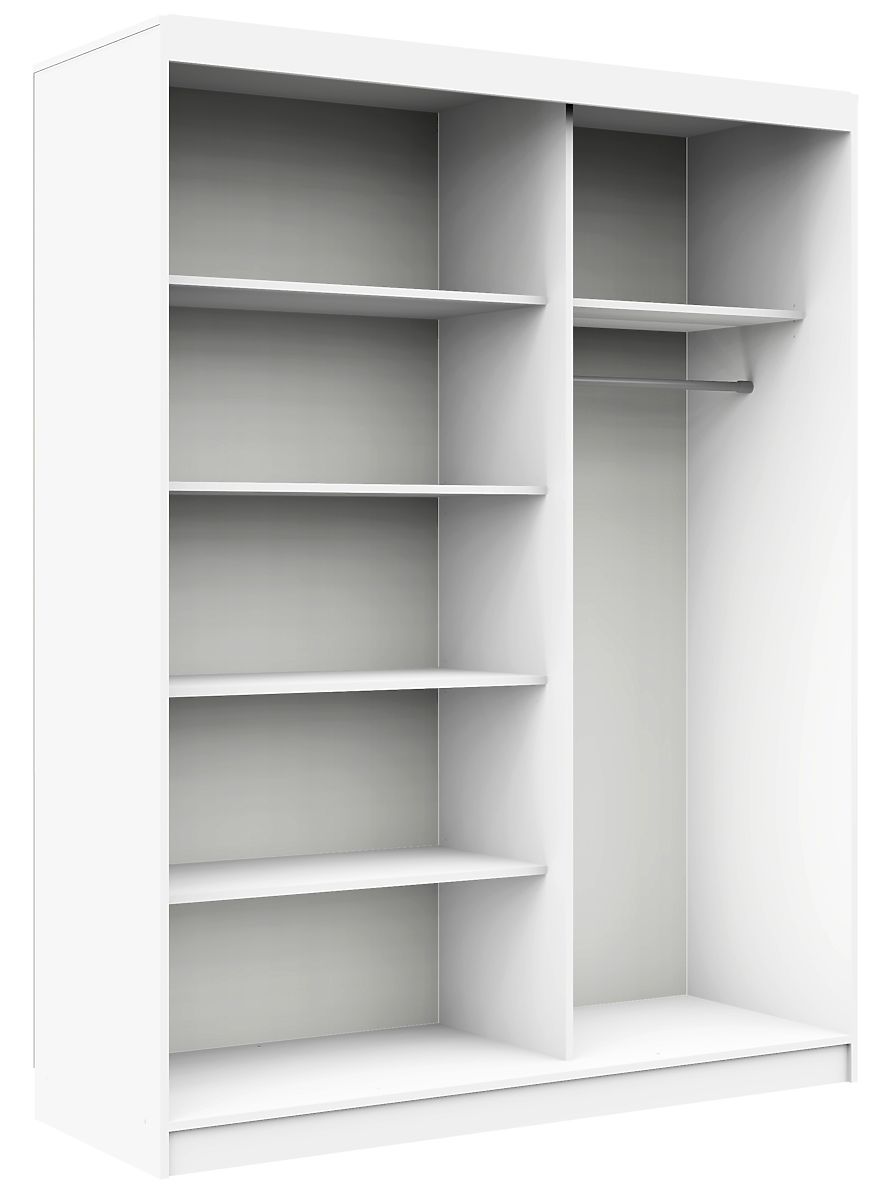 Armadio scorrevole bianco 150 cm con ripiani e asta per abiti. Ampia area di utilizzo.