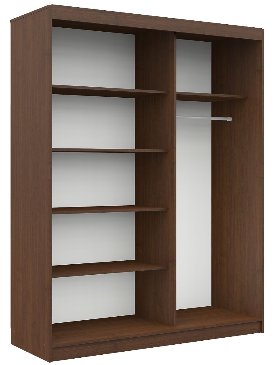Armadio scorrevole di colore wenge con una lunghezza di 150 cm, dotato di ripiani e asta per abiti. Ampia area utilizzabile.