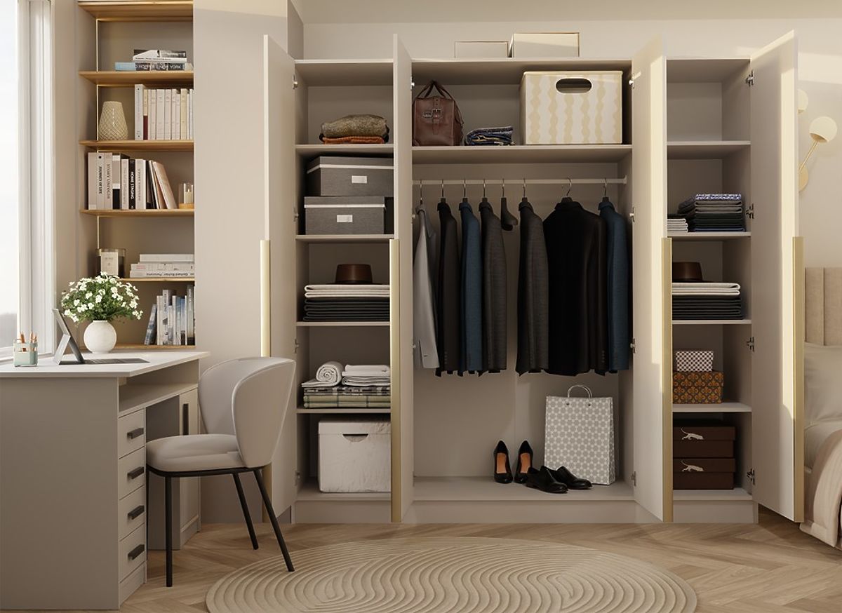 Banaby.it » Mobili per bambini / Comodini e armadi / Armadi / ARMADIO SENSO 4D 200 CM 4 ANTE MANIGLIE DORATE PER SOGGIORNO CAMERA DA LETTO CASHMERE BEIGE