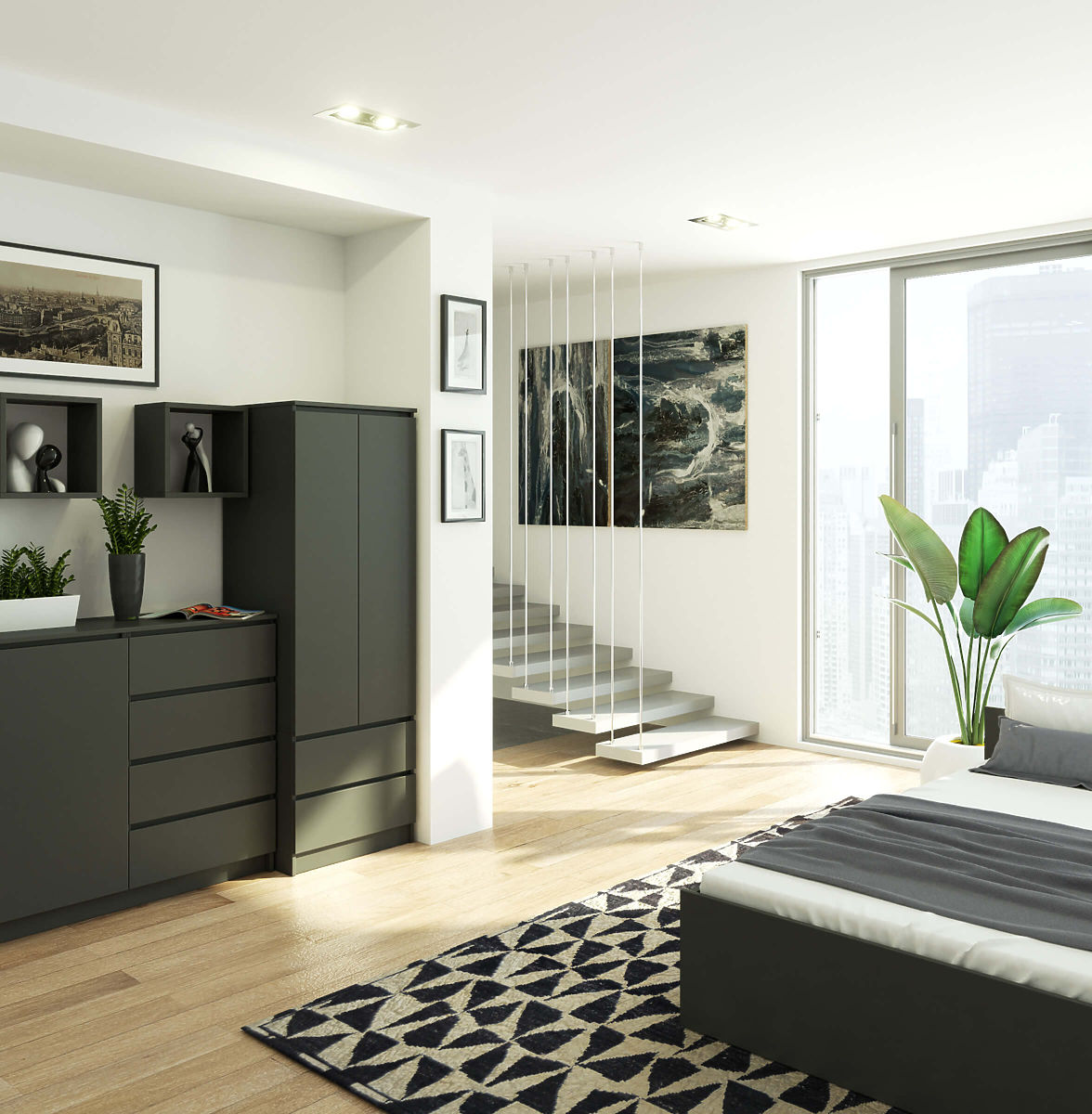 Armadio con 2 porte e 2 cassetti in grigio grafite. .. altro