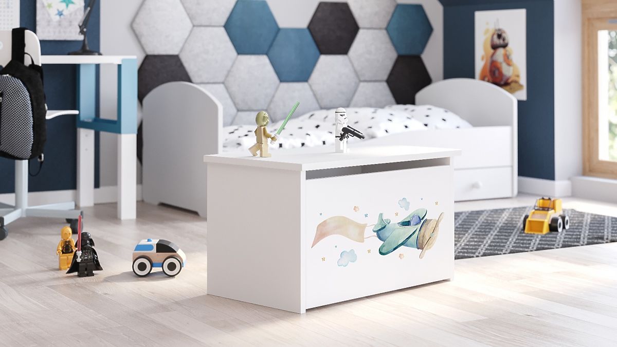 Banaby.it » Mobili per bambini / Comodini e armadi / Cassapanche per i giocattoli / Baule per giocattoli Daria bianco con stampa Aereo