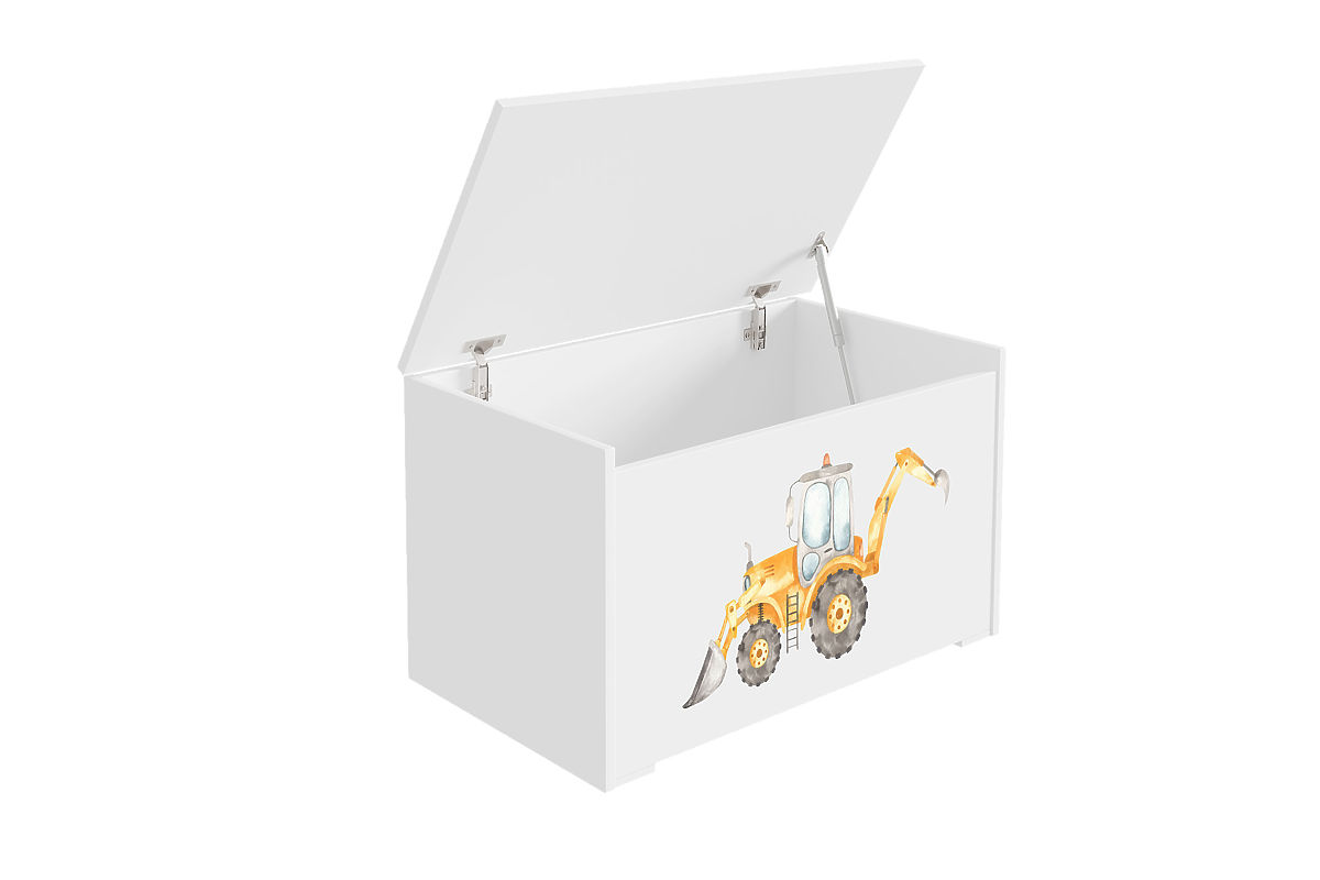 Banaby.it » Mobili per bambini / Comodini e armadi / Cassapanche per i giocattoli / Baule per giocattoli Daria bianco con stampa Escavatore giallo