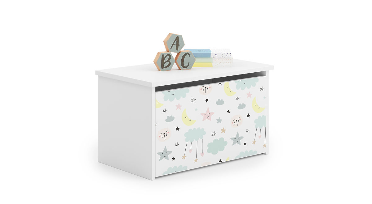 Baule per giocattoli bianco con stampa stelline e design fiabesco. .. altro