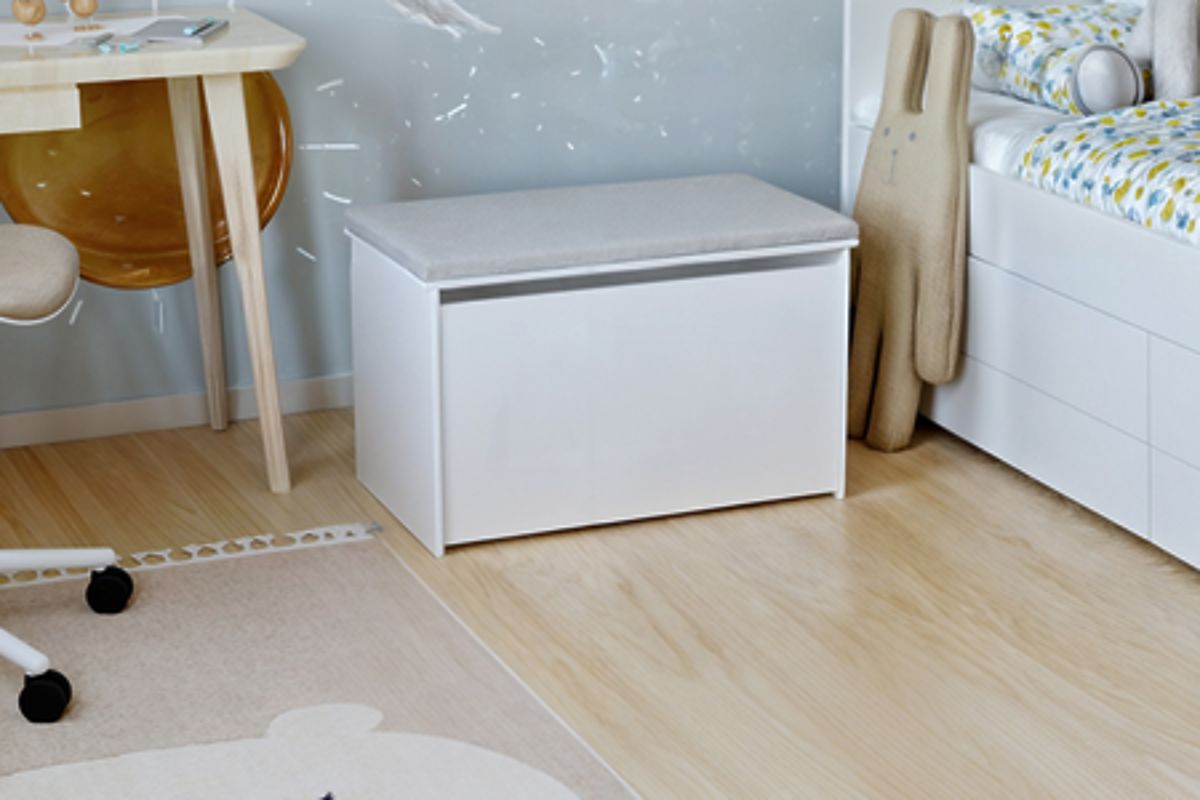 Il baule per giocattoli DARIA è un mobile elegante e funzionale che aiuta a mantenere l'ordine nella stanza dei bambini e funge anche da comoda seduta. Realizzato in un colore bianco universale, è la soluzione ideale per gli interni dei bambini. Inoltre, la seduta imbottita offre comfort e comodità, e l'interno spazioso può contenere tutti i giocattoli e gli accessori del tuo bambino.