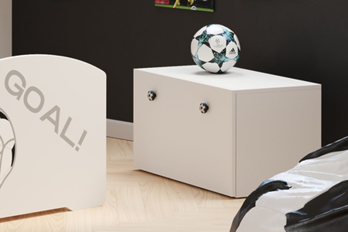 Il baule INGA si distingue per il suo aspetto moderno e minimalista, che si adatta perfettamente a diversi stili di interni. Può servire non solo come spazio di archiviazione per giocattoli, ma anche come pratico spazio di archiviazione in altre stanze. Realizzato in resistente pannello laminato e protetto da bordi in PVC, garantisce robustezza e facile manutenzione della pulizia.