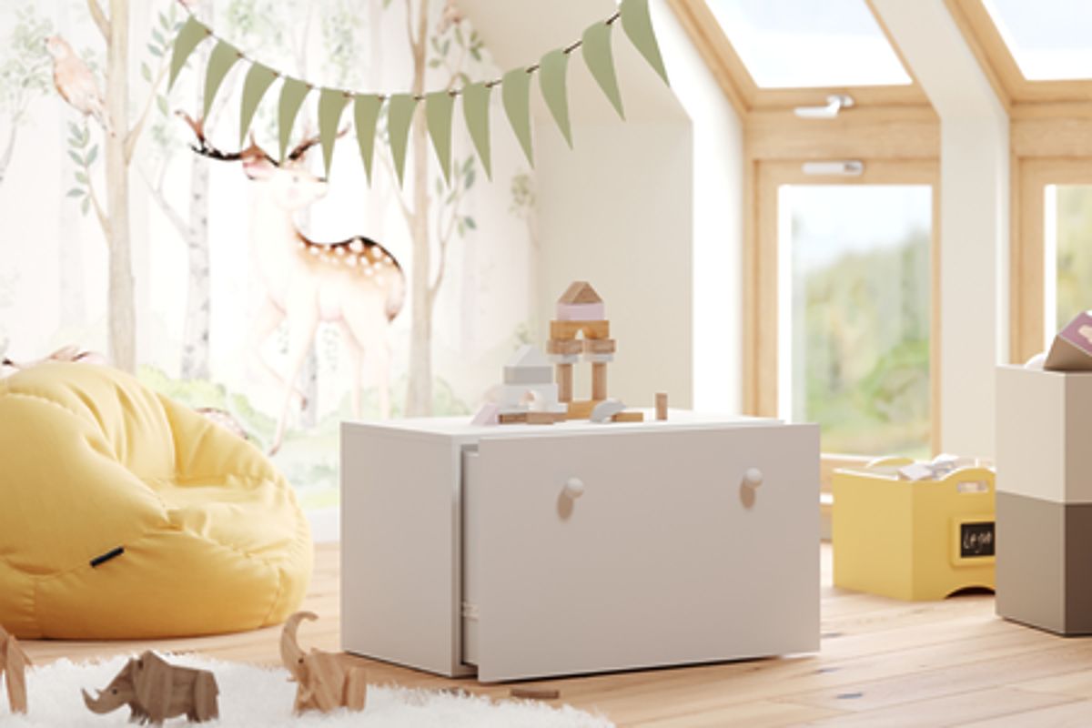 Il baule per giocattoli INGA è un modo eccellente per organizzare lo spazio nella cameretta dei bambini, nella camera da letto o nell'ingresso. Grazie al suo interno spazioso, consente di riporre comodamente giocattoli, coperte, vestiti e altri piccoli oggetti, contribuendo a mantenere l'ordine in ogni ambiente. La sua struttura funzionale garantisce un accesso rapido e comodo agli oggetti riposti.