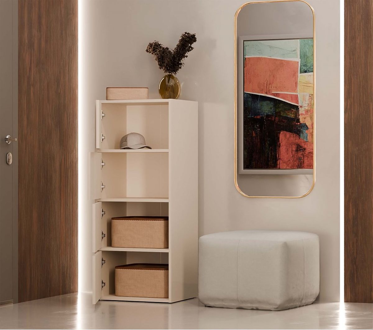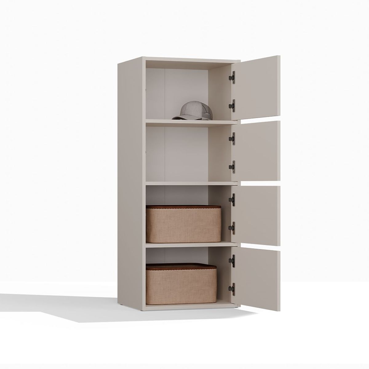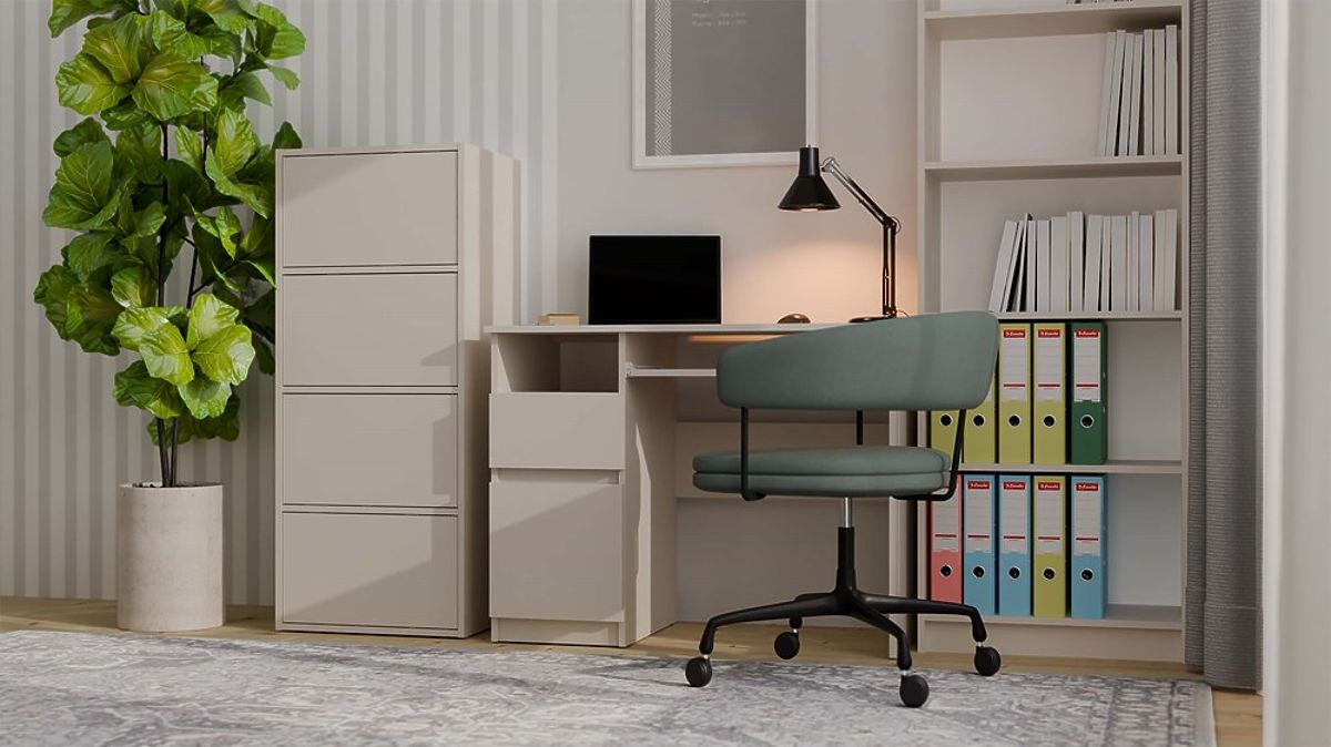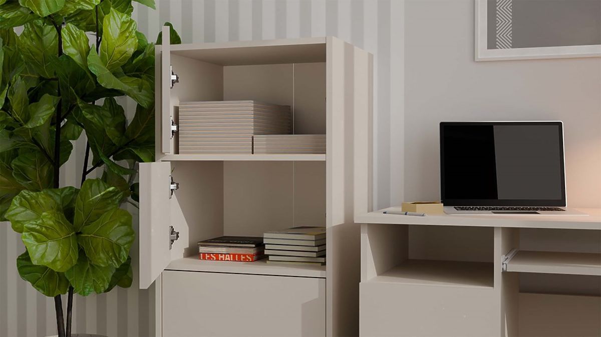 Grazie agli ampi ripiani nascosti dietro le ante lisce, la cassettiera offre molto spazio di archiviazione e facilita il mantenimento dell'ordine in ogni ambiente.