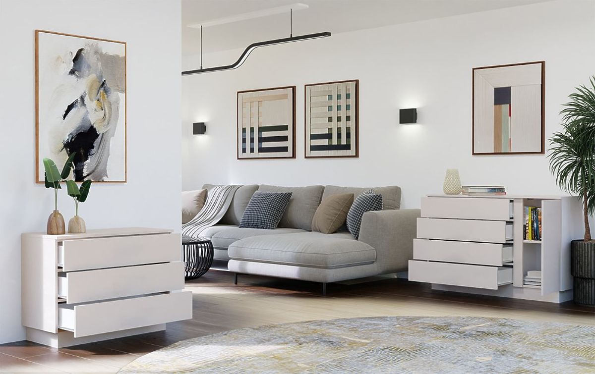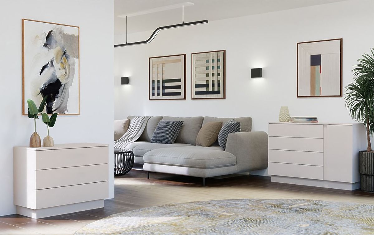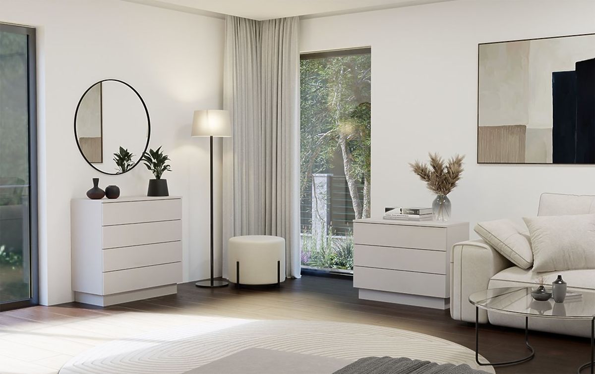 Cassettiera moderna AMBER con 3 cassetti in colore cashmere. .. altro