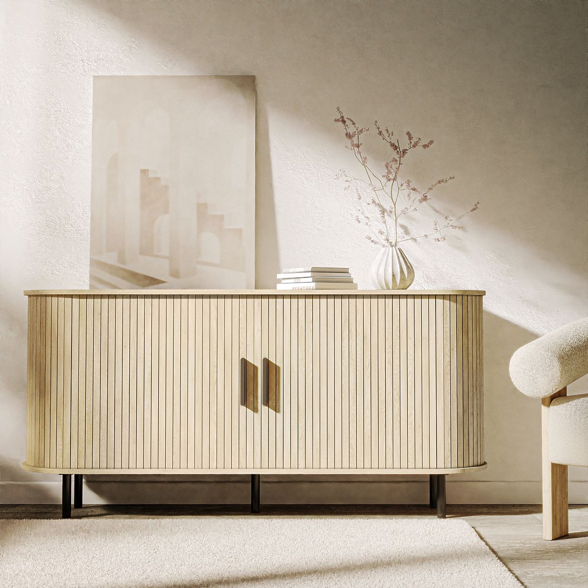Cassettiera di design con lamelle verticali e finitura in rovere chiaro. .. altro