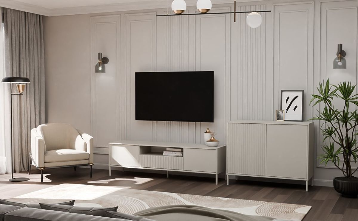 La cassettiera KAMARO 2D SLIM/LISCIO CASHMERE si combina perfettamente con altri mobili della collezione KAMARO, come mobili TV, vetrine o altre cassettiere. Crea composizioni armoniose, adattate alle tue esigenze e al tuo stile di vita!