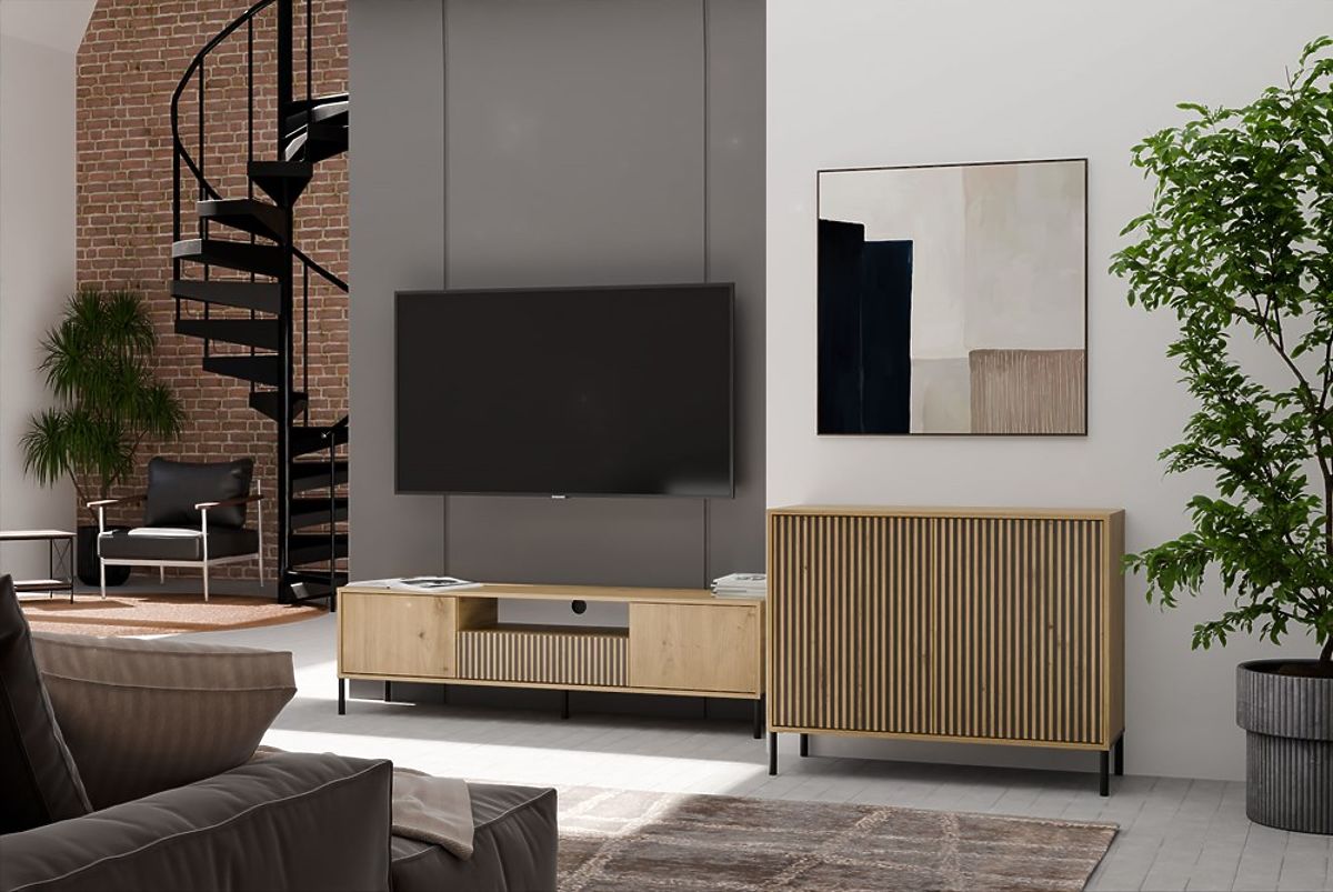 COLORE: ROVERE ARTISANELEGANZA E PRATICITÀ IN UNOLa cassettiera KAMARO 2D SLIM è una combinazione di estetica e funzionalità, perfetta per il soggiorno, la camera degli ospiti, la camera da letto o lo studio. Grazie al pannello frontale scanellato delle ante (simile a lamelle), il mobile acquisisce un aspetto moderno e originale, ideale per interni contemporanei.
