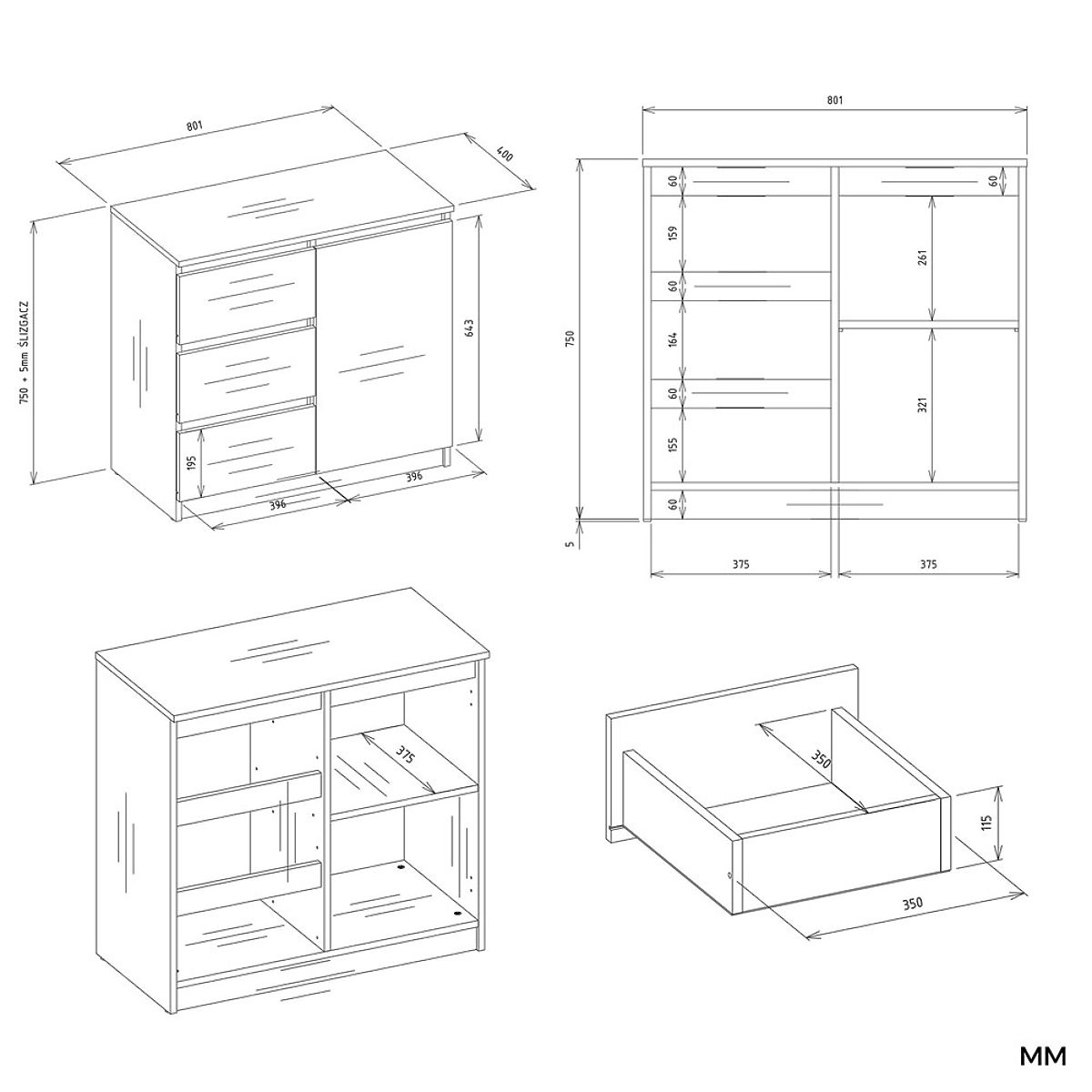 Cassettiera 1D3S con anta e tre cassetti in colore Cashmere. .. altro