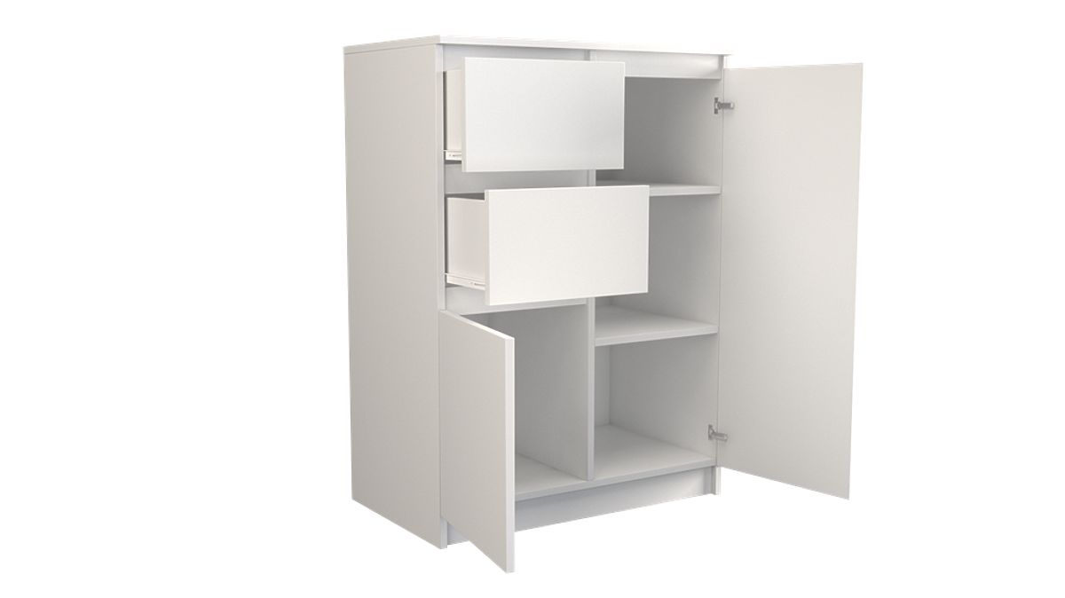 Cassettiera moderna con 2 ante e 2 cassetti in bianco opaco. .. altro