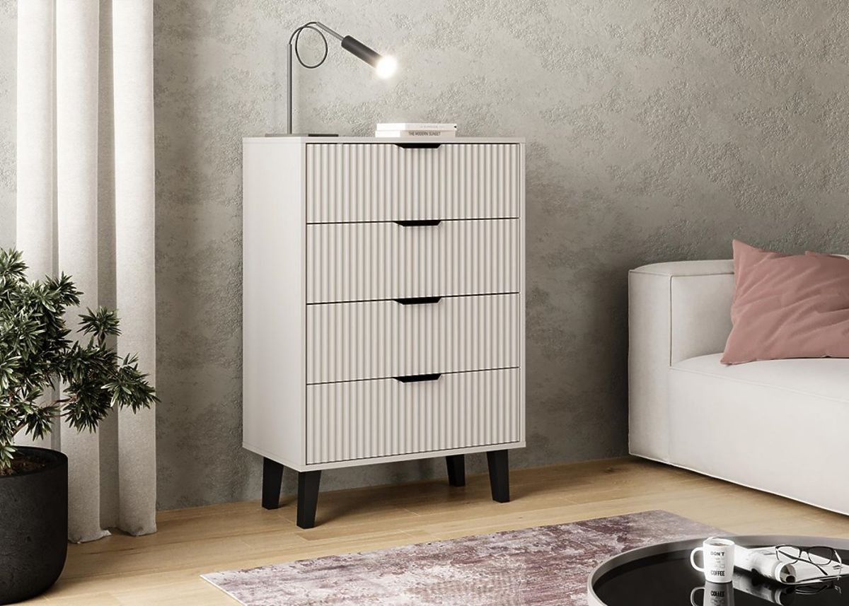 Cassettiera moderna con 4 cassetti spaziosi e frontali scanalati. .. altro