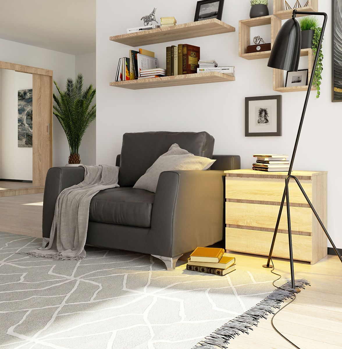Elegante, funzionale e moderno - questo è il comò CL3 con tre cassetti offerto dal negozio online di mobili Akord. Questo pezzo di arredamento in un'elegante e alla moda colore rovere sonoma si adatta perfettamente non solo alla camera da letto o al soggiorno, ma anche all'ingresso e agli spazi ufficio.