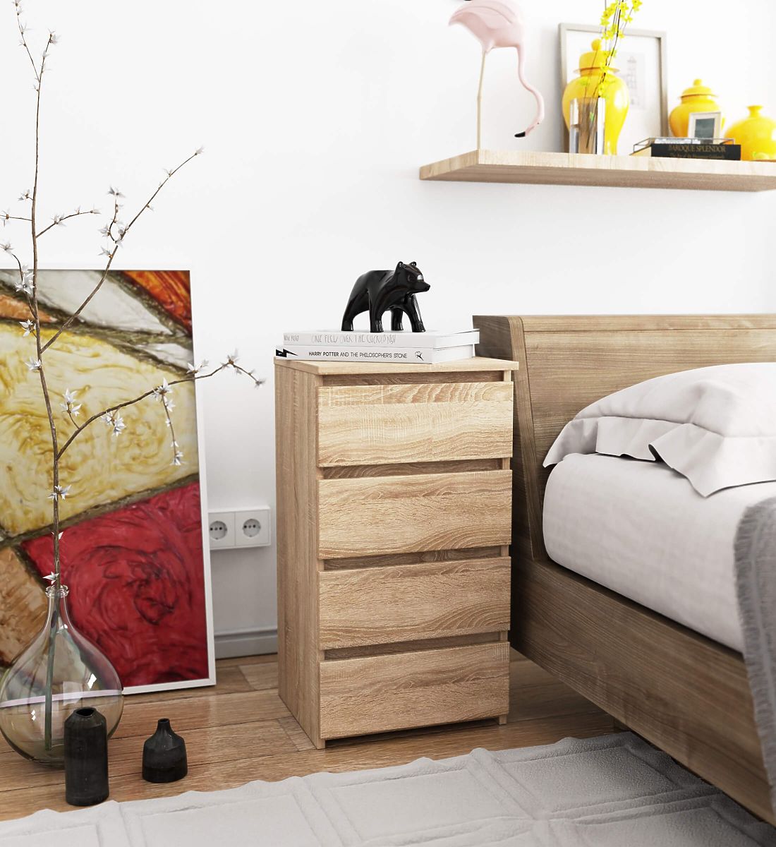 I comò sono un tipo di arredamento popolare che si posiziona accanto al letto. Sulla sua superficie si trova spesso una lampada, mentre all'interno ci sono oggetti che facilitano il riposo e il sonno. Chi cerca un comò elegante dovrebbe prestare attenzione al comò CL4 40 cm in colore rovere sonoma. Si adatterà magnificamente a qualsiasi camera da letto. Può essere posizionato anche nella stanza dei bambini.