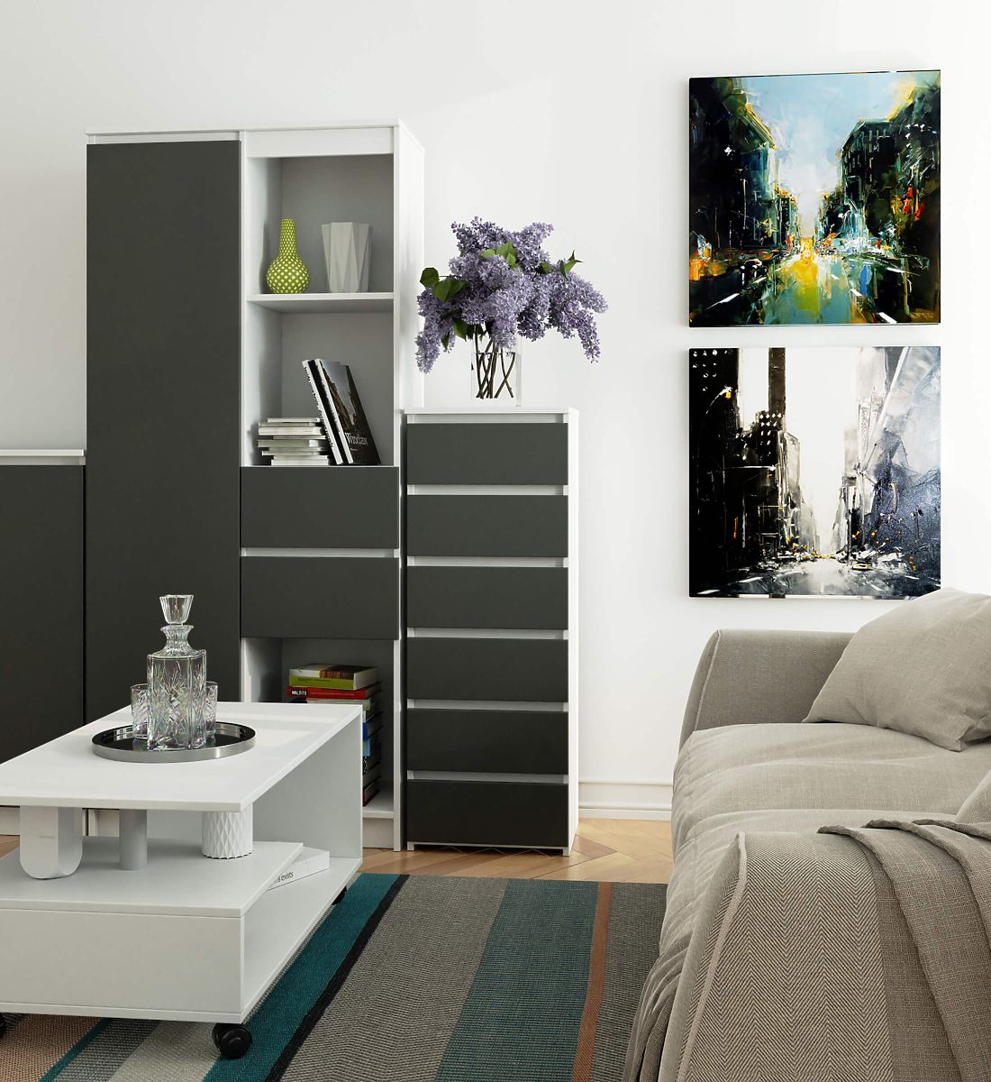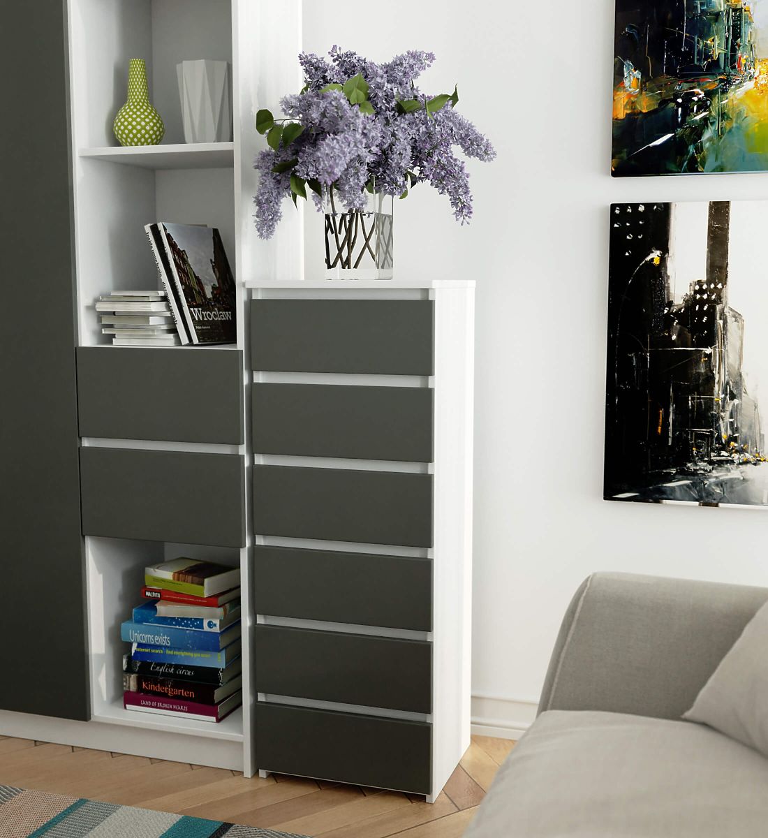 I comò sono un tipo di arredamento popolare che si posiziona accanto al letto. Sulla sua superficie si trova spesso una lampada, mentre all'interno ci sono oggetti che facilitano il riposo e il sonno. Chi cerca un comò elegante dovrebbe prestare attenzione al comò CL6 da 40 cm in bianco con frontali grigio grafite. Si distinguerà magnificamente in ogni camera da letto. Può essere posizionato anche nella stanza dei bambini.