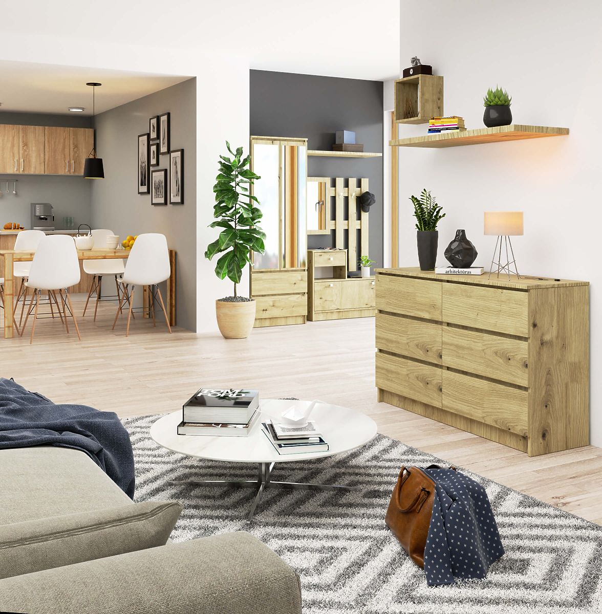 Banaby.it » Mobili per bambini / Comodini e armadi / Comodini / CREDENZA K120 6SZ CLP ROVERE ARTIGIANO