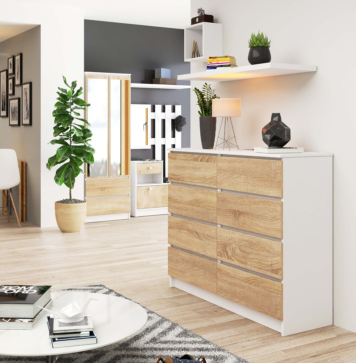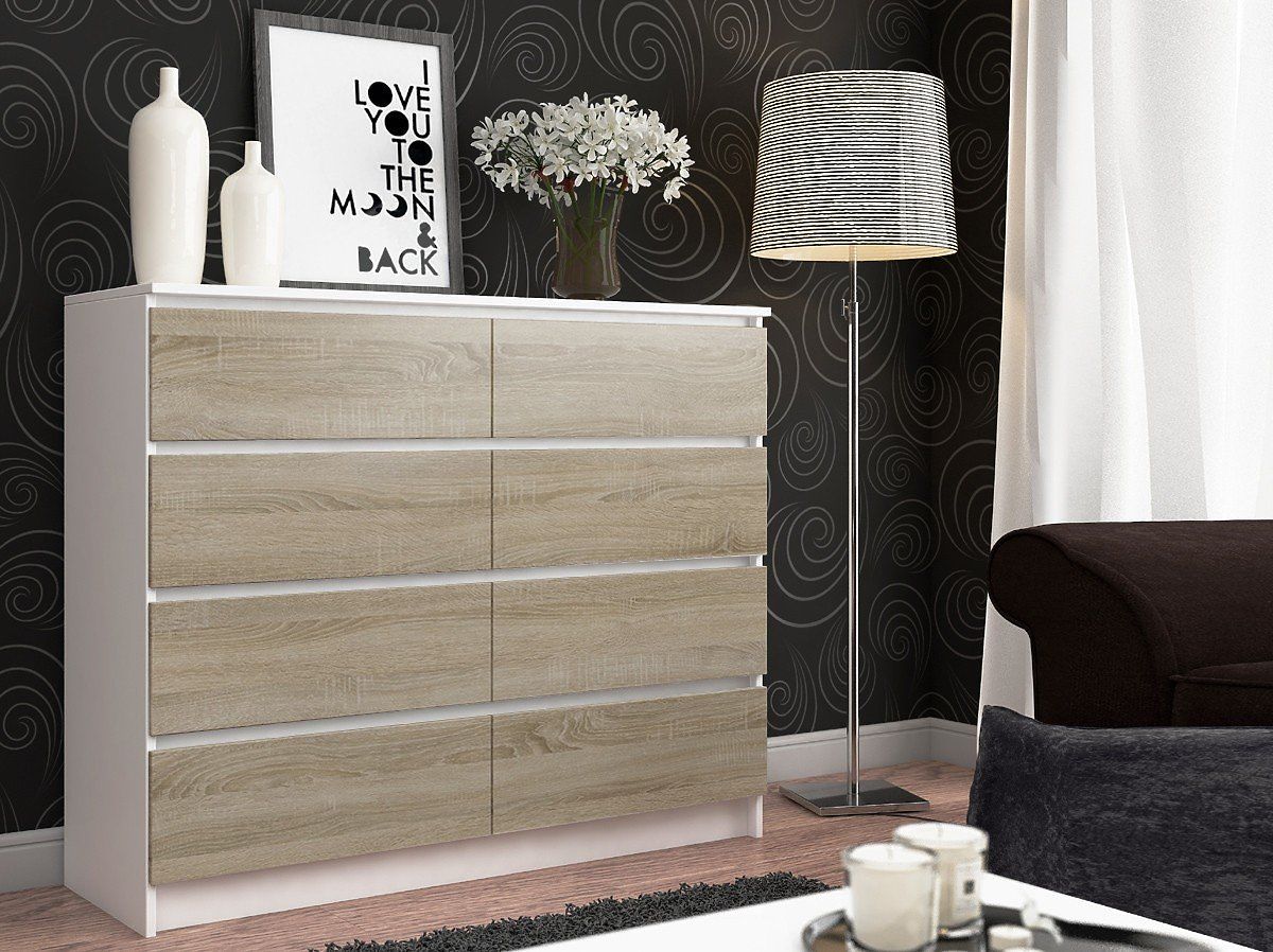 Comò con 8 cassetti in bianco e rovere Sonoma. .. altro