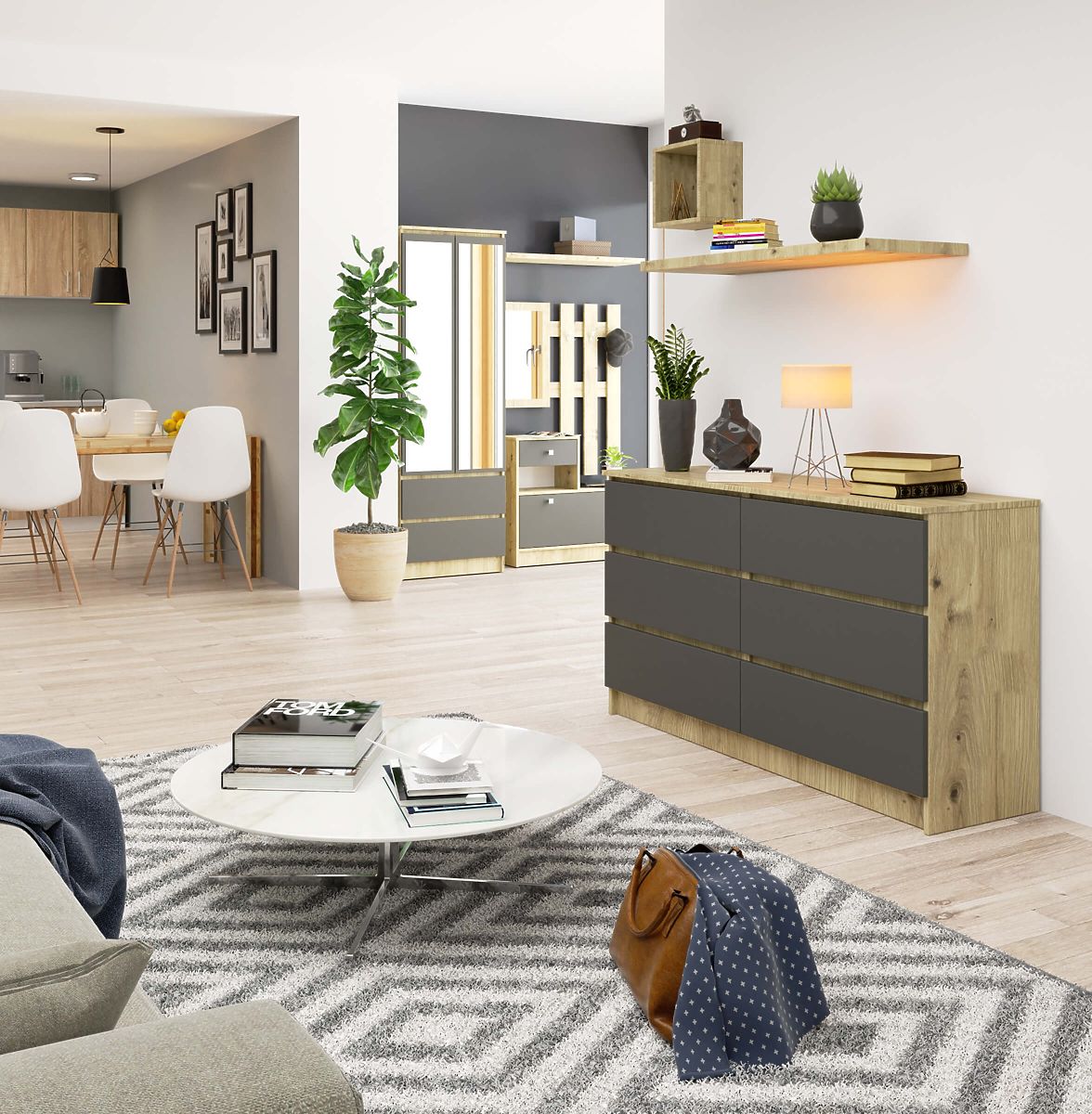Banaby.it » Mobili per bambini / Comodini e armadi / Comodini / COMÒ K140 6SZ CLP ROVERE ARTISAN / GRIGIO