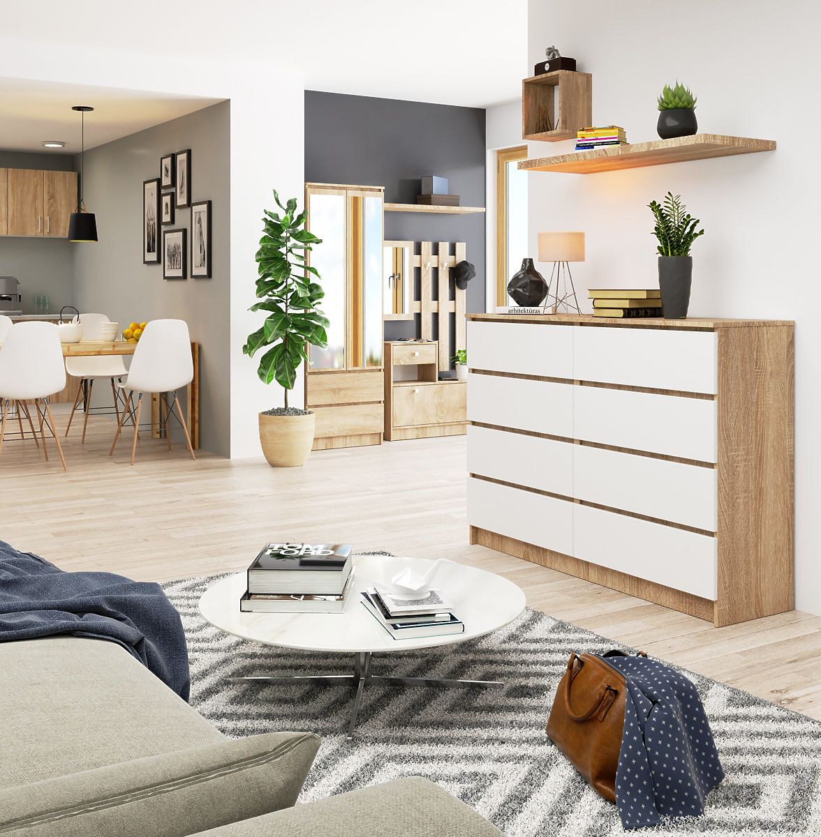 Comò moderno con 8 spaziosi cassetti in finitura Sonoma e bianco. .. altro