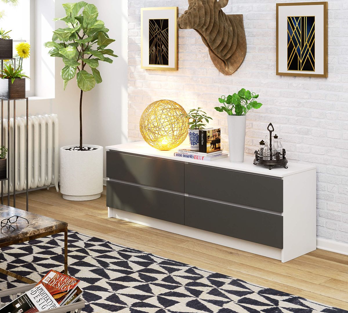 Comò laminato bianco e grigio con 4 cassetti e bordi ABS. .. altro