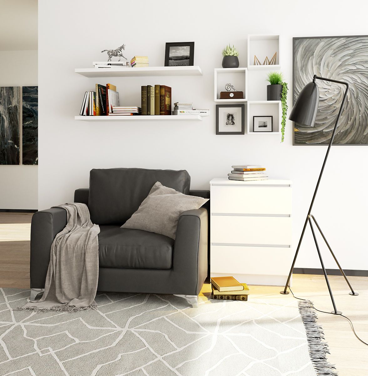 Comò bianco con 3 cassetti per stile scandinavo. .. altro