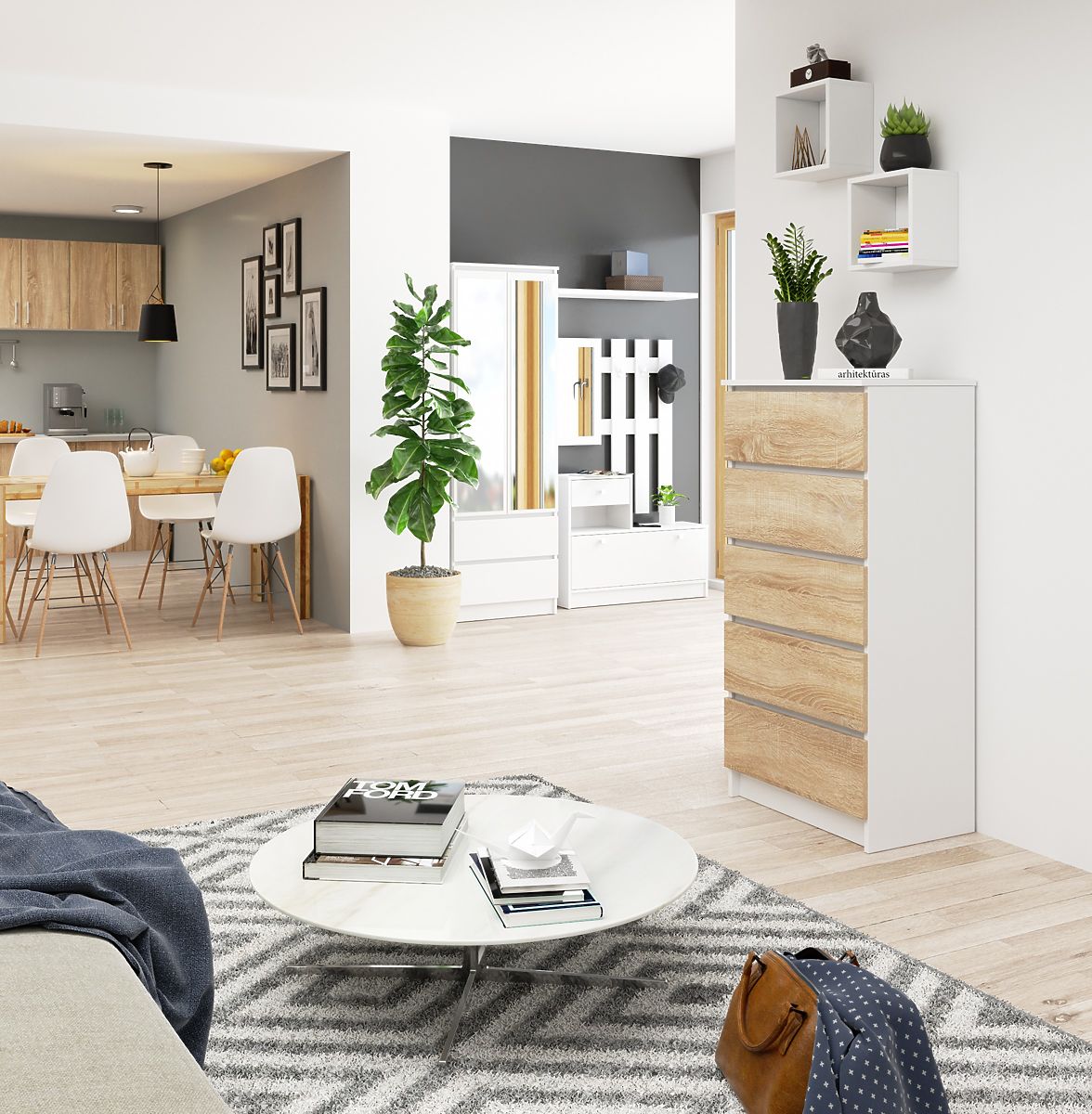 Comò con 5 cassetti in bianco e rovere Sonoma. .. altro