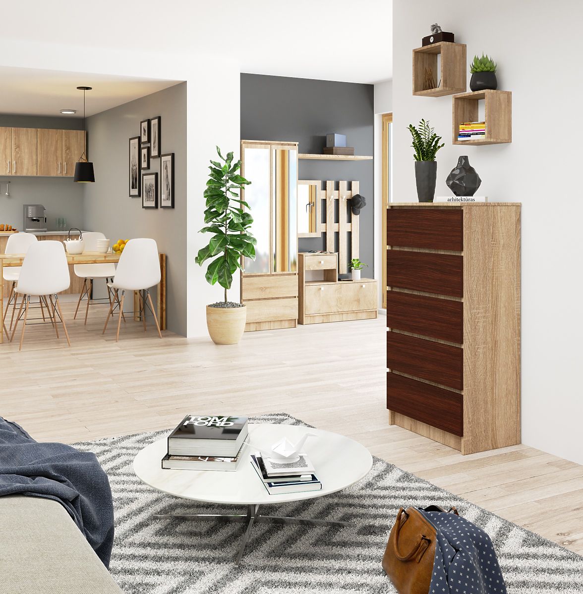 Comò con 5 cassetti in rovere Sonoma e frontali Wenge. .. altro