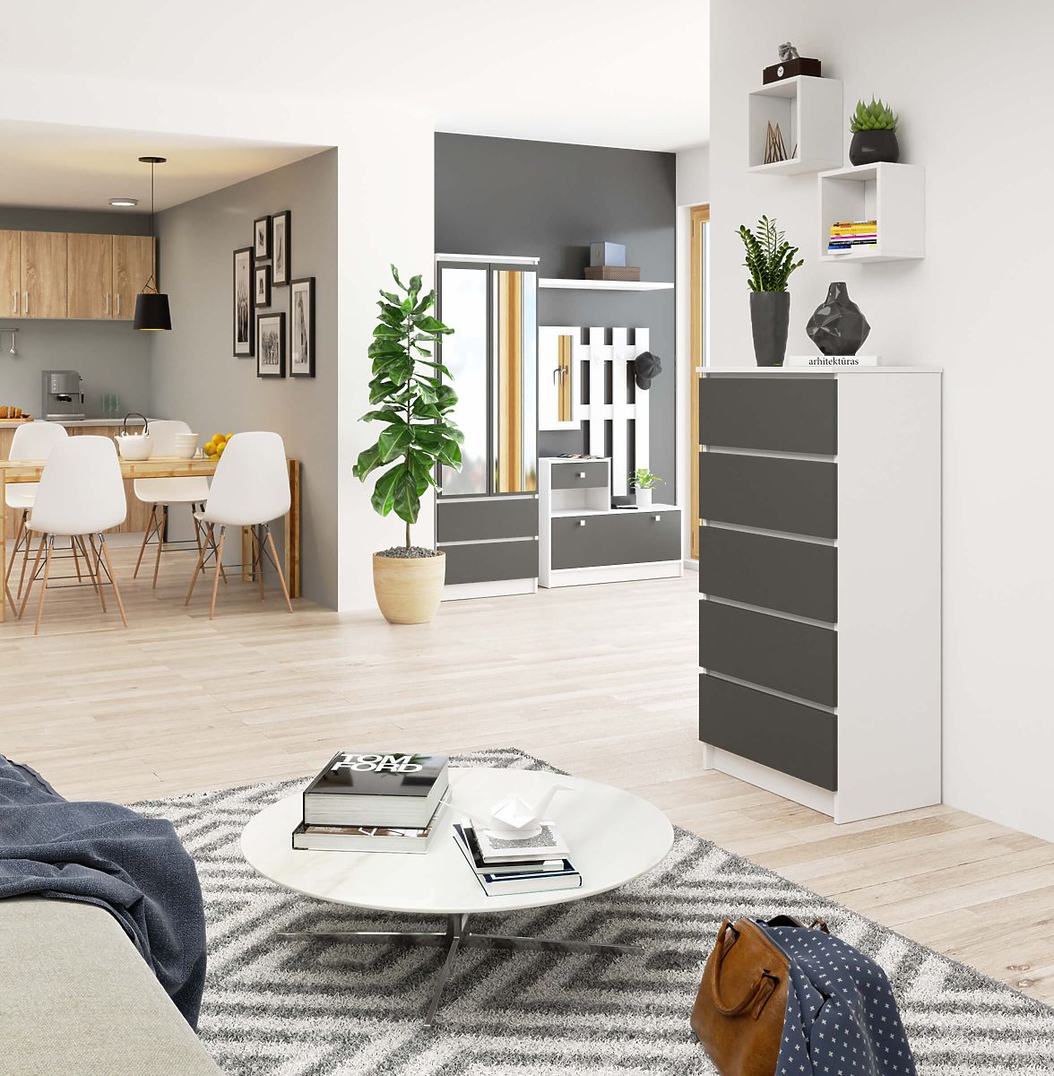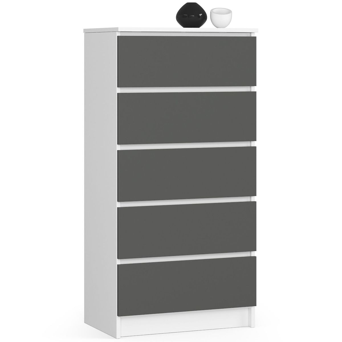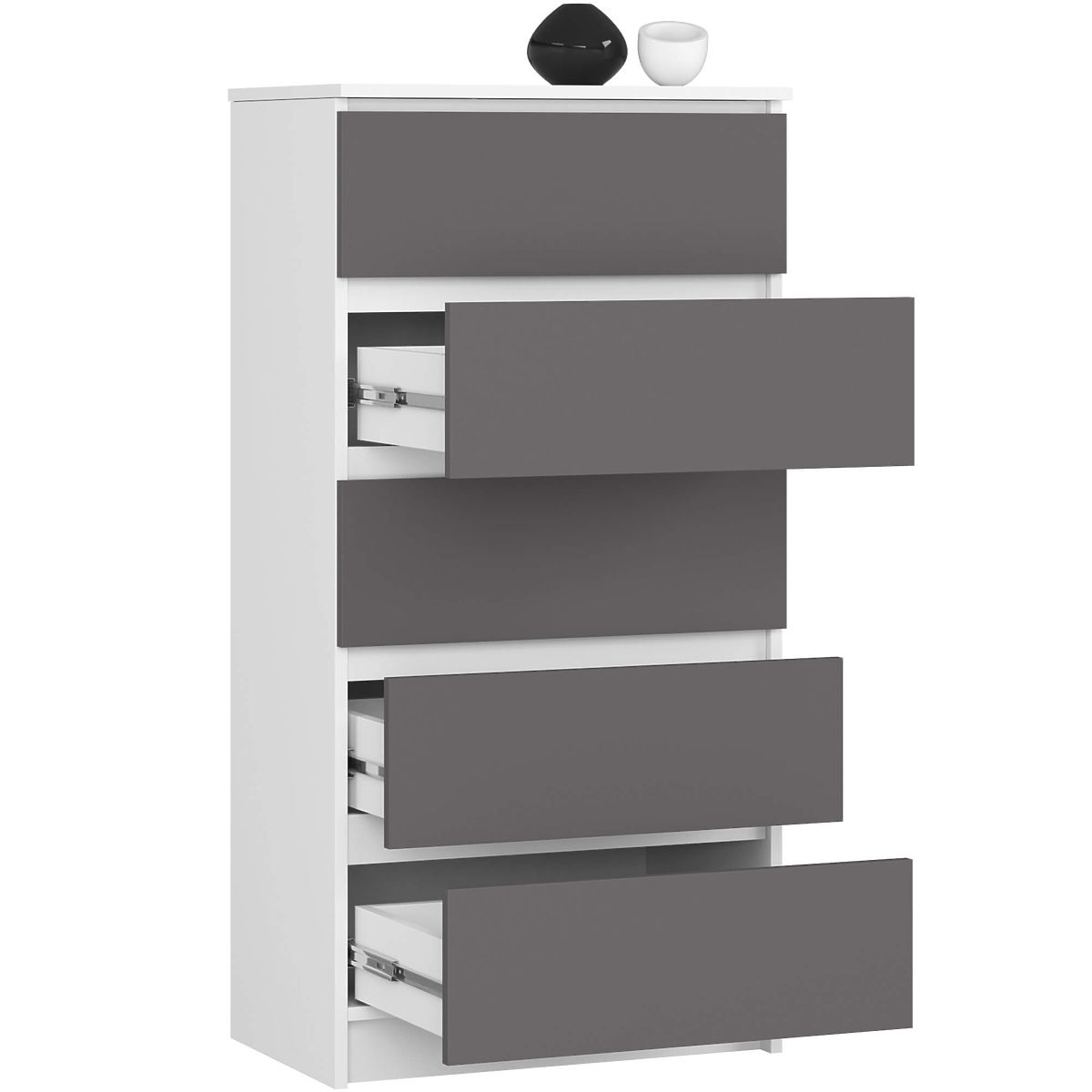 Comò con 5 cassetti in bianco e grigio grafite. .. altro