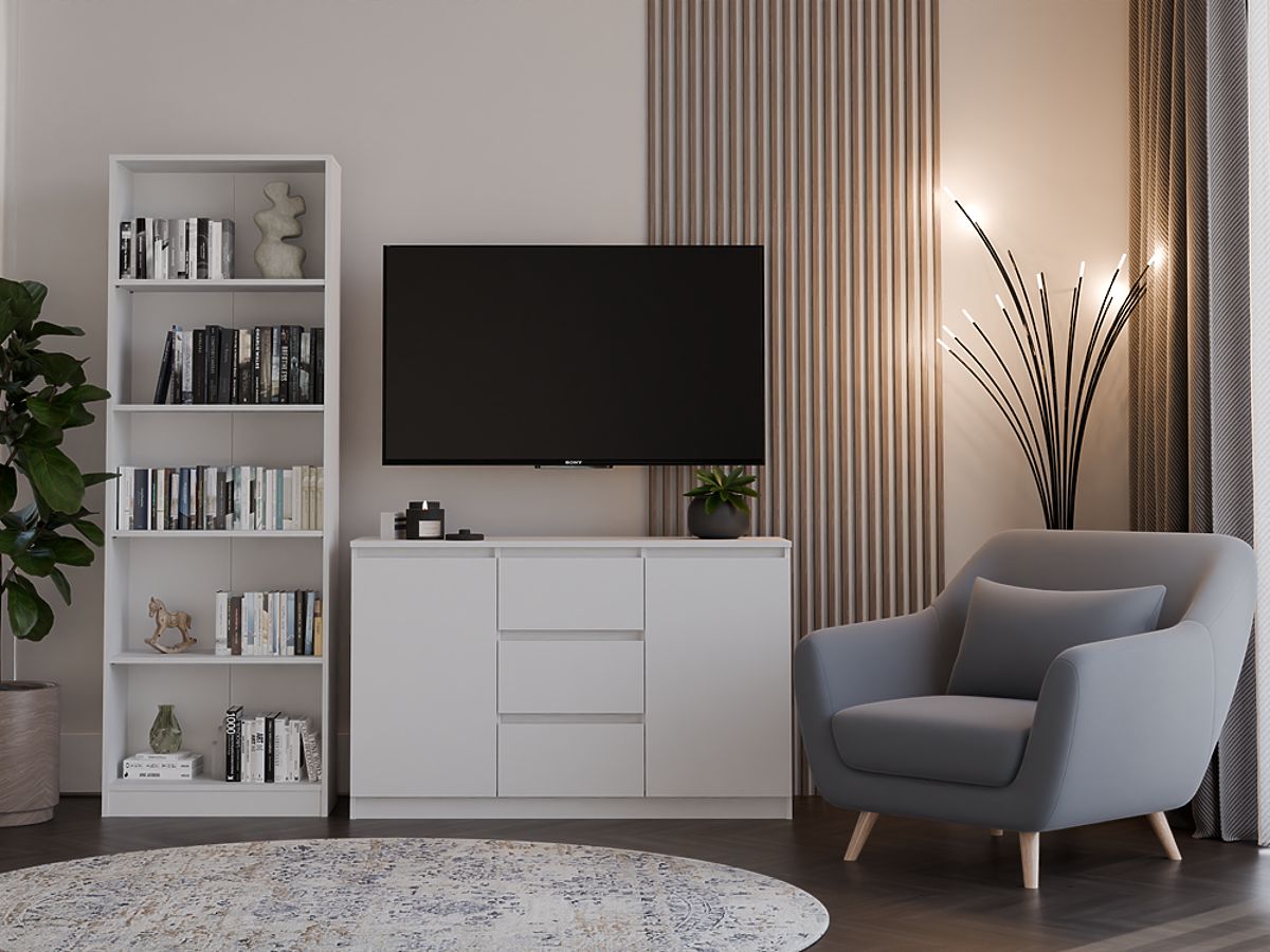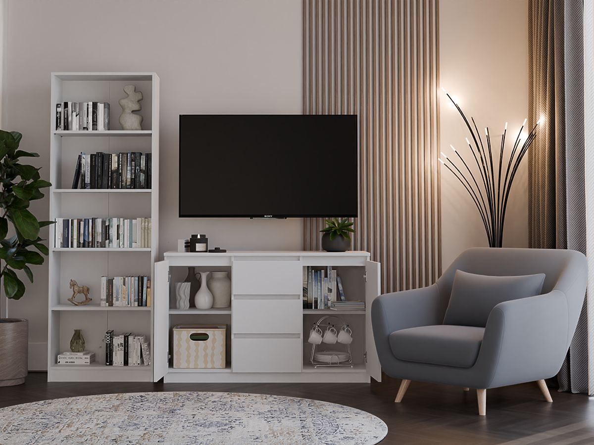 Comò moderno con 2 ante e 3 cassetti, colore bianco. .. altro