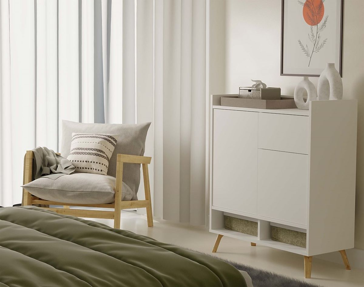 Banaby.it » Mobili per bambini / Comodini e armadi / Comodini / Credenza COLIN Mobile 2 Ante 1 Cassetto con Gambe BIANCA